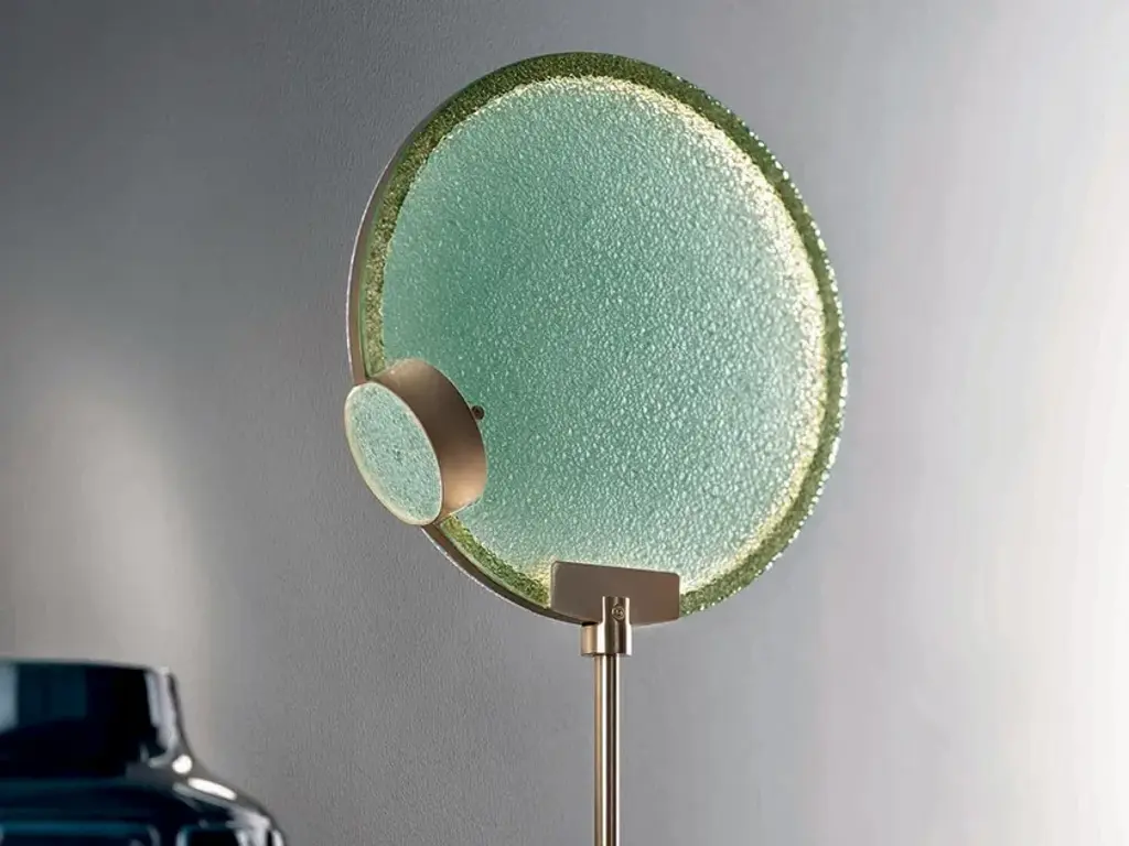 Horo TL is a dimmable table lamp. Made in glass and brushed brass. Glass available in different colors. Lamp for contract and hotels.Electrical characteristicsLED 14,4W CRI>95 3000K 1536LMLED 14,4W CRI>95 2700K 1464LMDIMMABLE: OWN BUTTONCE LEDCCC LEDCB SCHEME LEDThe disc of light is a symbol as old as the world, a universal symbol and endless source of inspiration. Pierre Gonalons, who is very fond of the shape of the circle, with references ranging from the Egyptian god Ra, to the golden sun, to the eye of Horus, has conceived a collection of suspension, floor, wall and table lamps: Horo. "The combination of finishes and colours strikes an excellent balance between being inspired by Italian design from the 1950s and designing innovative, very contemporary proposals," says Pierre Gonalons. The Horo collection is designed to scenically illuminate both residential and contract spaces.
