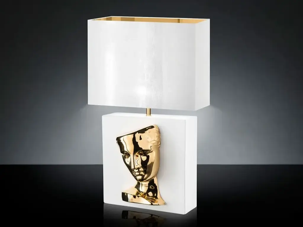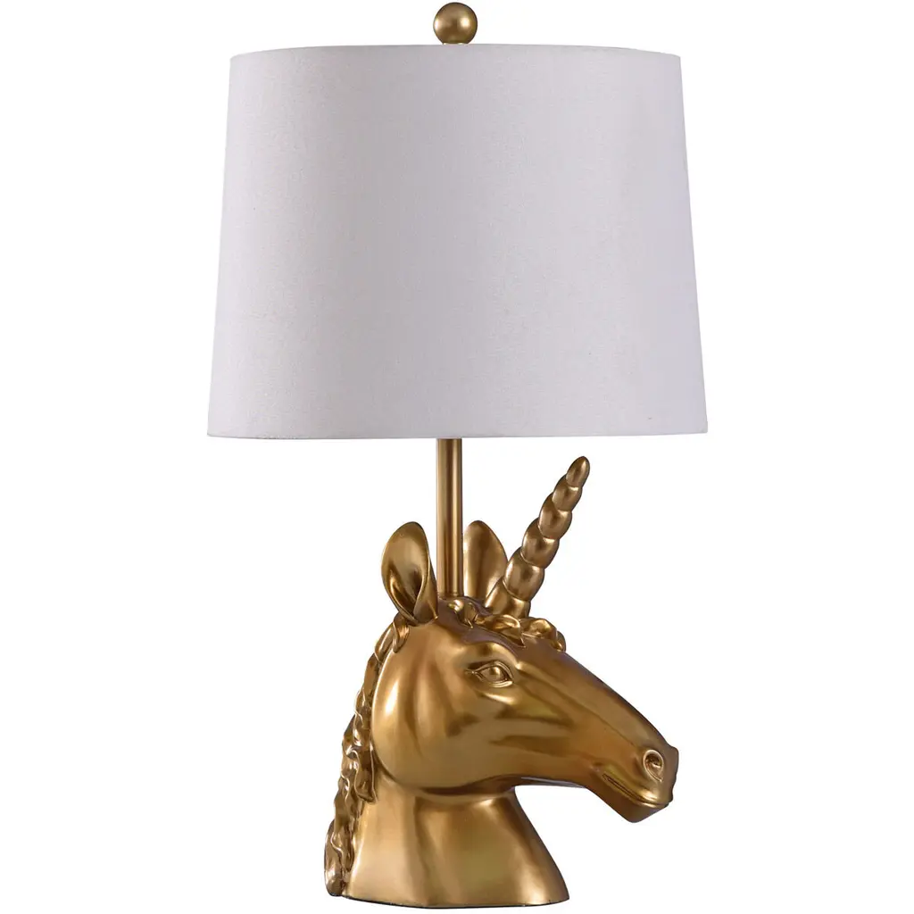 Adding an ornate accent to classic or eclectic decors alike, this precious table lamp is a testament to artisan expertise. It features an elongated lampshade in pleated fabric topping the zoomorphic ceramic base which is minutely crafted and decorated by hand. Rendered in exquisite details, the brown horse's head is illuminated by the golden finish of its messy mane and slender base.