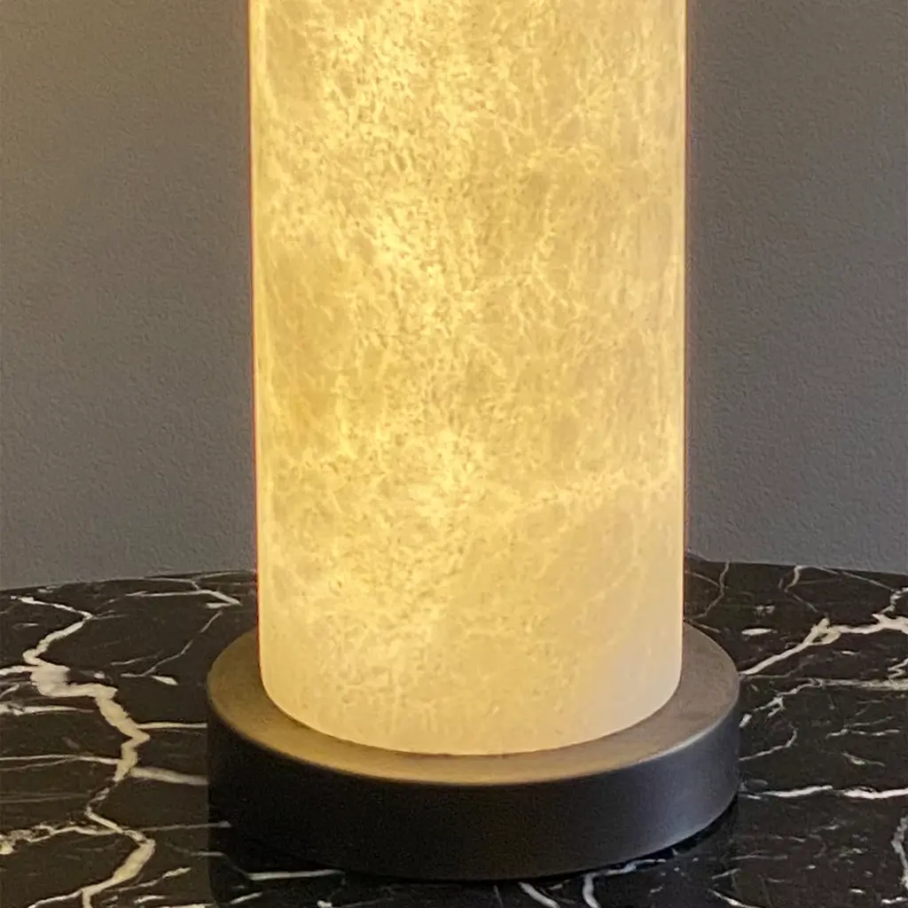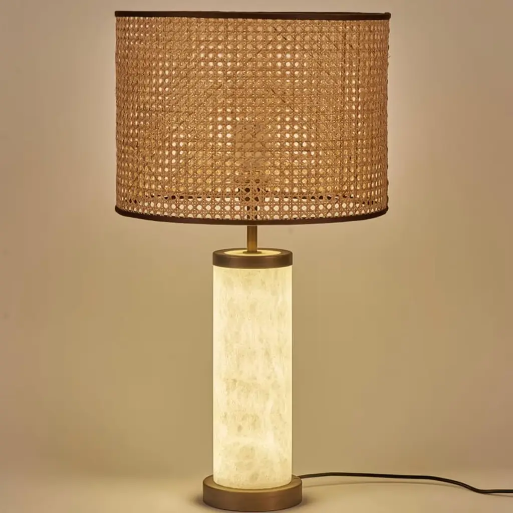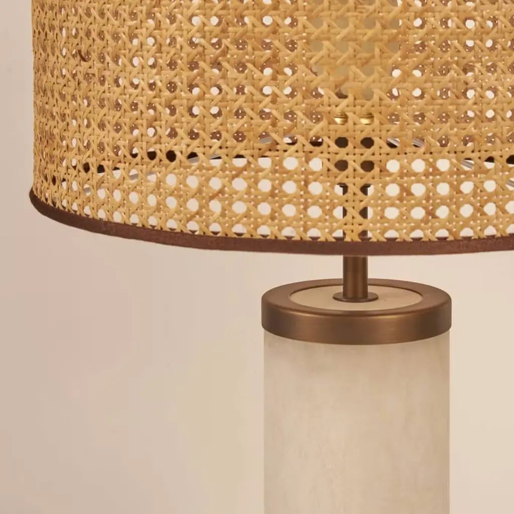 Hortensia Natural Straw Marble Cylinder Table Lamp