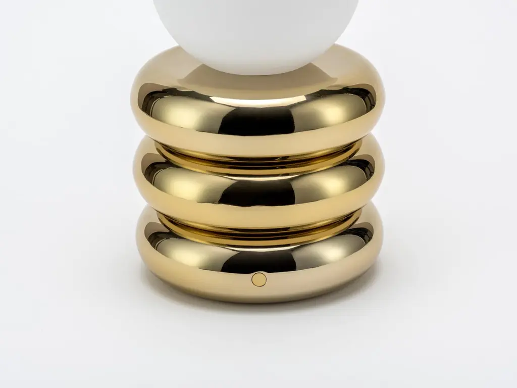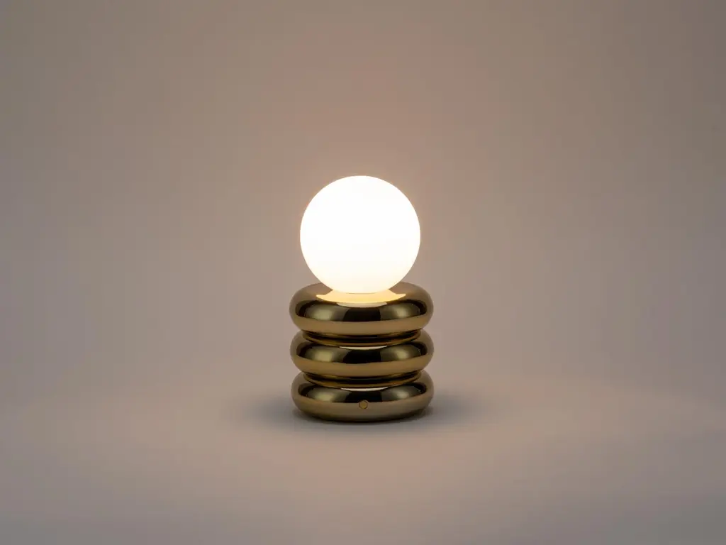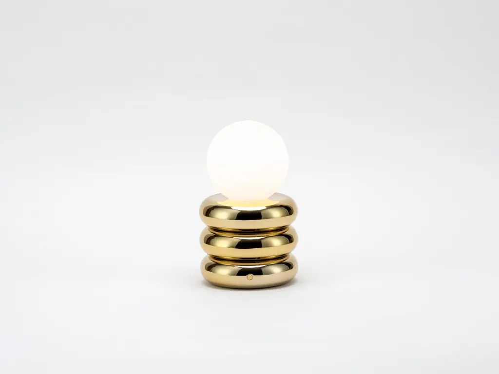 Stylish and fun, this little 'glow worm' is the perfect stylish desk lamp or bedside companion. Light up your interior and take it with you, as it's rechargeable battery means that you can move it around. With up to 7 hours charge time, the stacked brass 'pebbles' are an addition to the houseof collection.Great lighting is about so much more than just illuminating a room. it should elevate a space, even during daylight hours. Our colourful designer lighting range has been designed "function first", offering covetable, unique lights and lamps in exclusive houseof designs and (of course) in statement houseof colours.Additional Information:Material: Brass and glassColour: BrassHeight: 20cmWidth: 12cmDepth: 12cmShade: 12cm x 12cmWeight: 1.6kgSpread of light: AmbientEnergy rating: A++Care: Remove light from fitting and wipe carefully with a clean, soft, dry cloth.Lead time for UK orders 2 - 5 working days Lead time for US orders 5 - 10 working days.