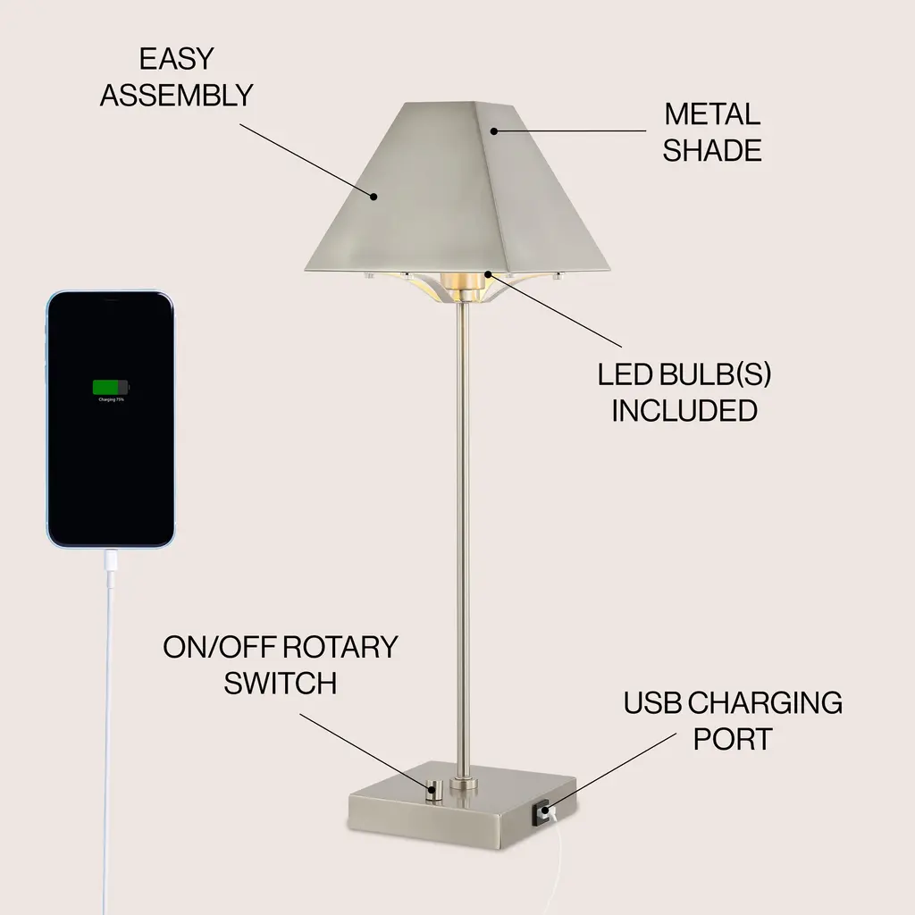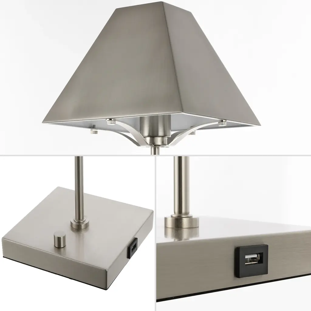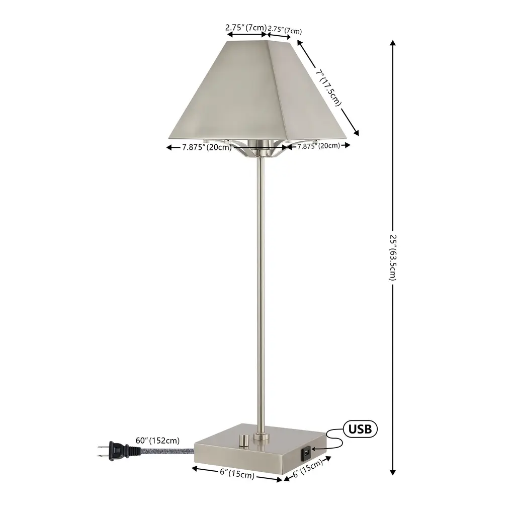 Houston 25" Industrial Style Iron Pyramid Bedside Led Table Lamp With Usb Charging Port, Nickel By Jonathan Y - 25" - Nickel