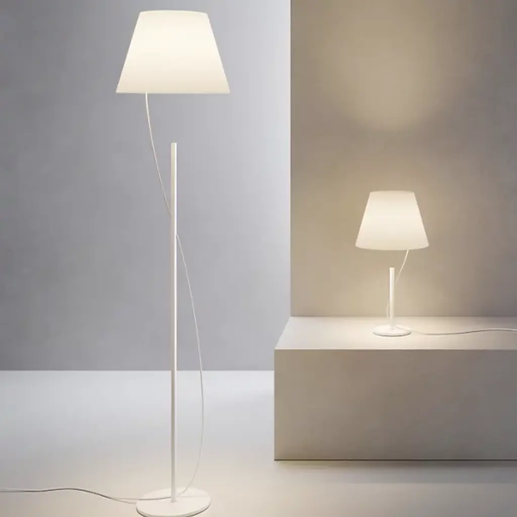The Hover LED Table Lamp from LODES triumphs with a distinctive contemporary style. Meticulously constructed with aluminum, its shade boasts a unique paper material. The design creates a captivating illusion, as the lampshade appears detached from the base, connected by a single cable that elegantly traverses the stem and emerges from the opposite end. This artful presentation creates a mesmerizing effect, making the light source seem almost weightless and suspended in mid-air, akin to a gracefully floating balloon.