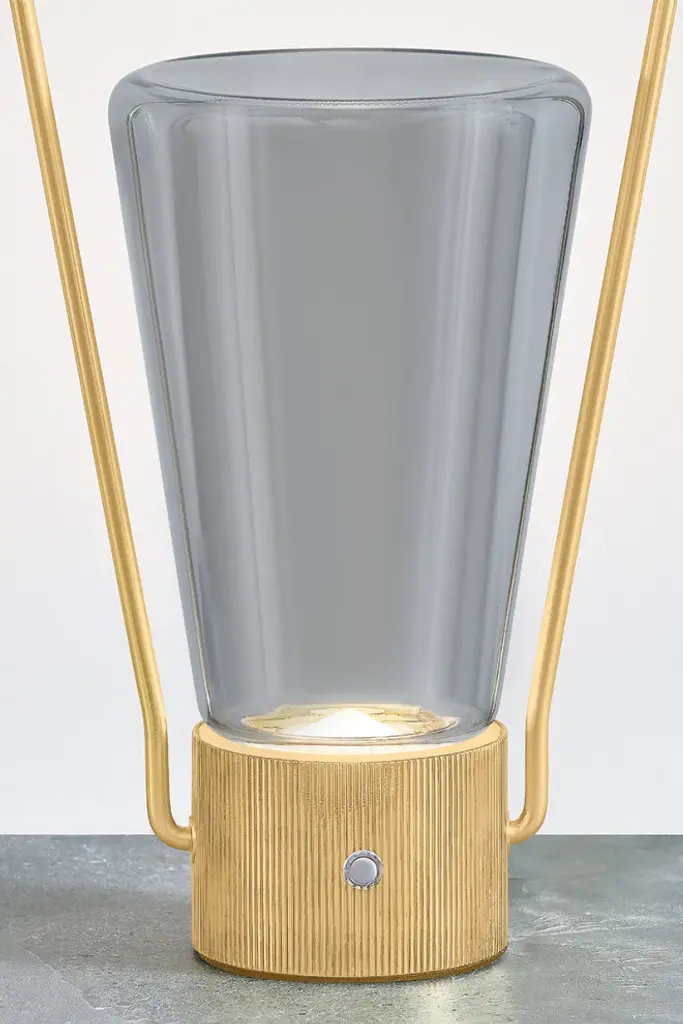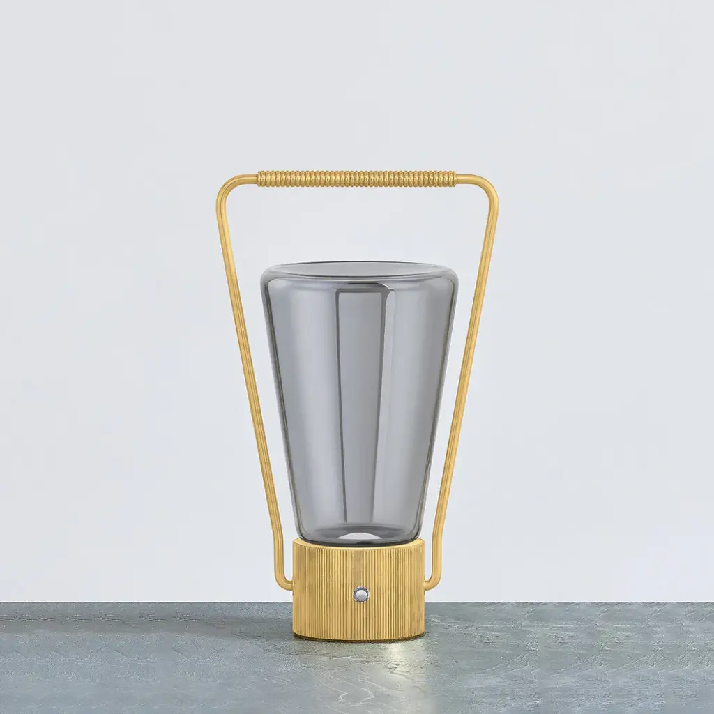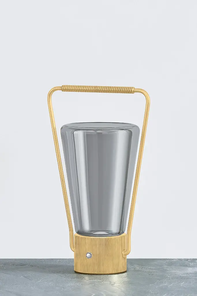 This petite portable is a moody everyday basic. A charming modern twist on a lantern design, Booker features a smoke glass shade and an Aged Brass frame. Its highly usable form is complemented by a tactile handle that invites you to grab and carry it with ease. Booker is perfectly sized for smaller spaces in need of a design pick-me-up.