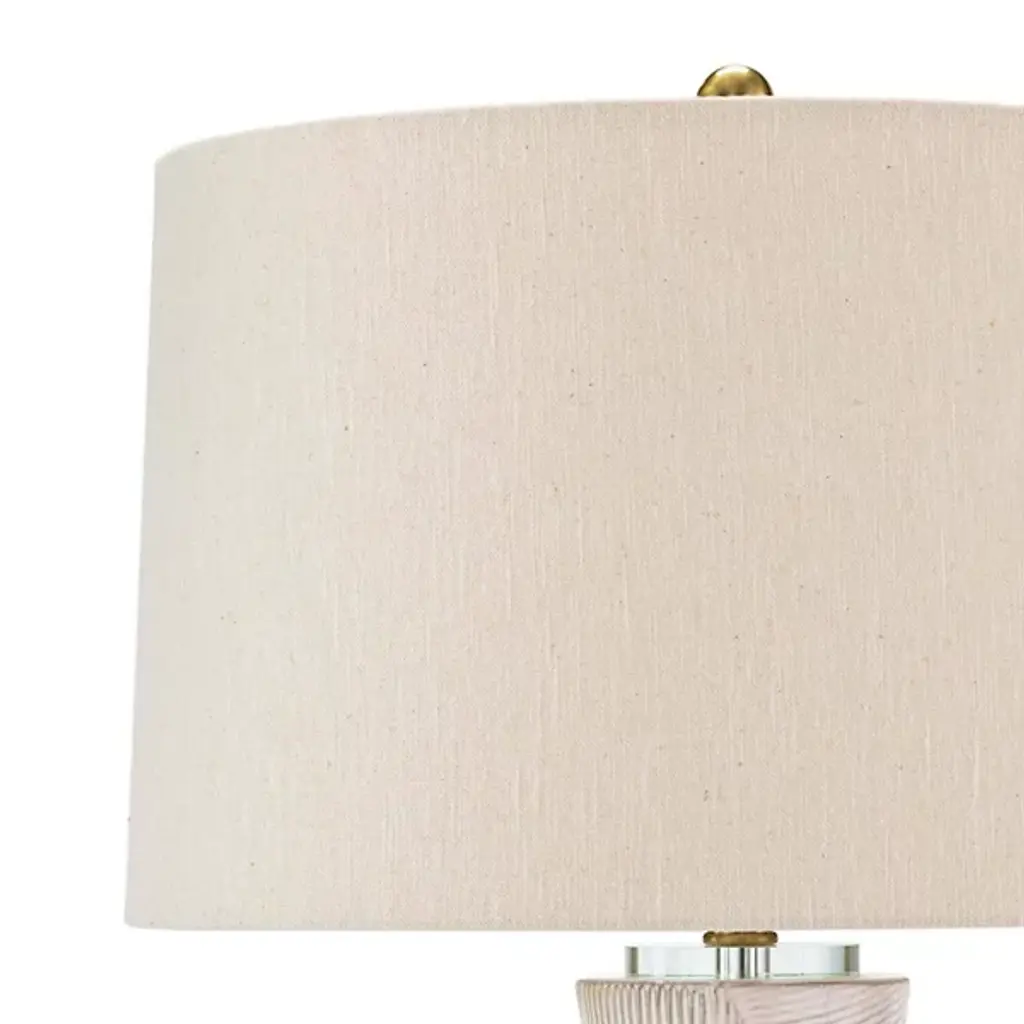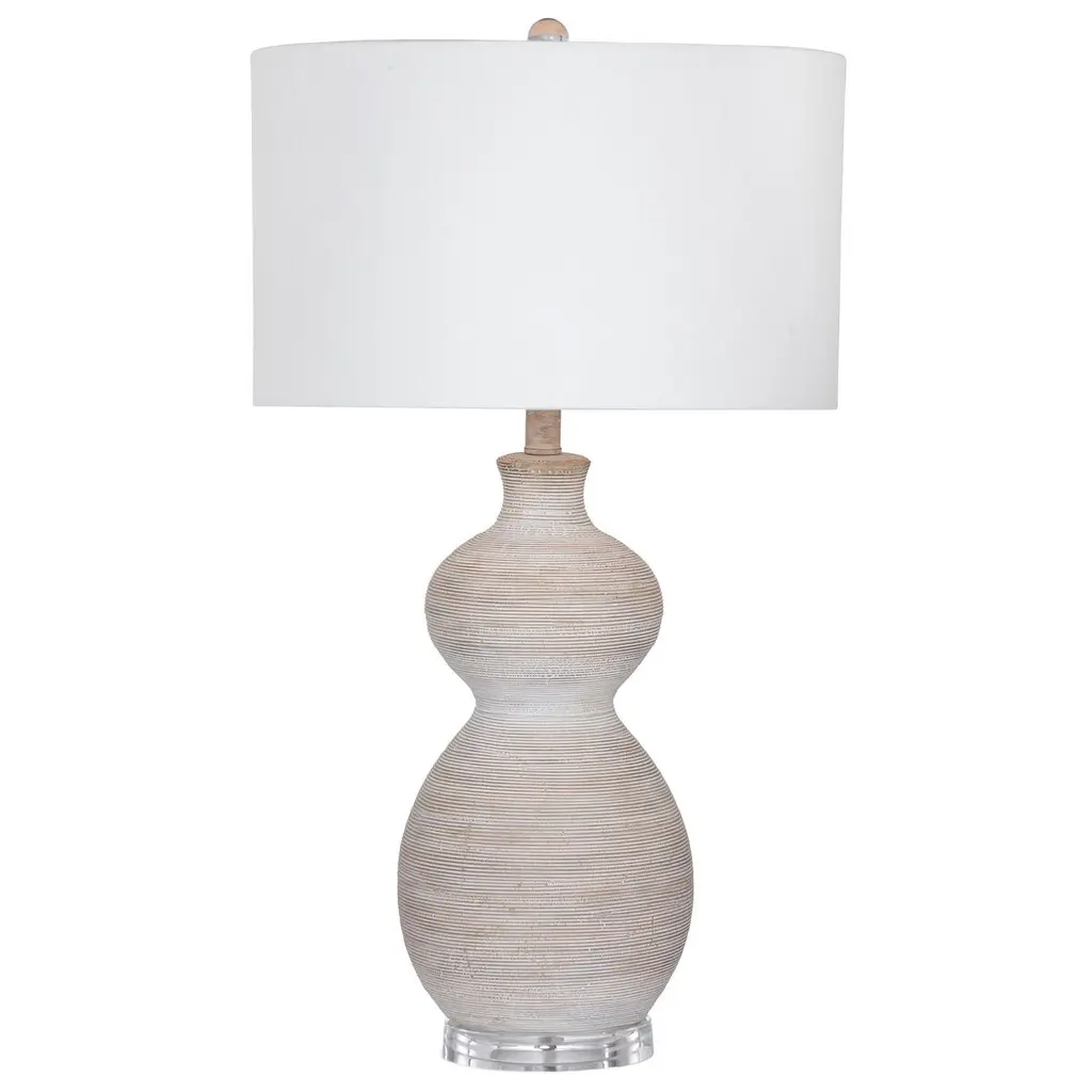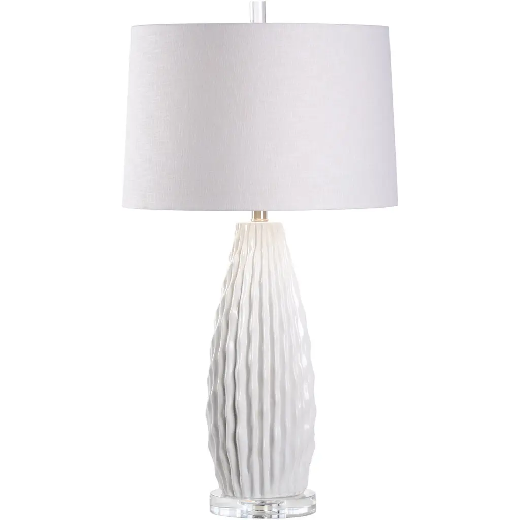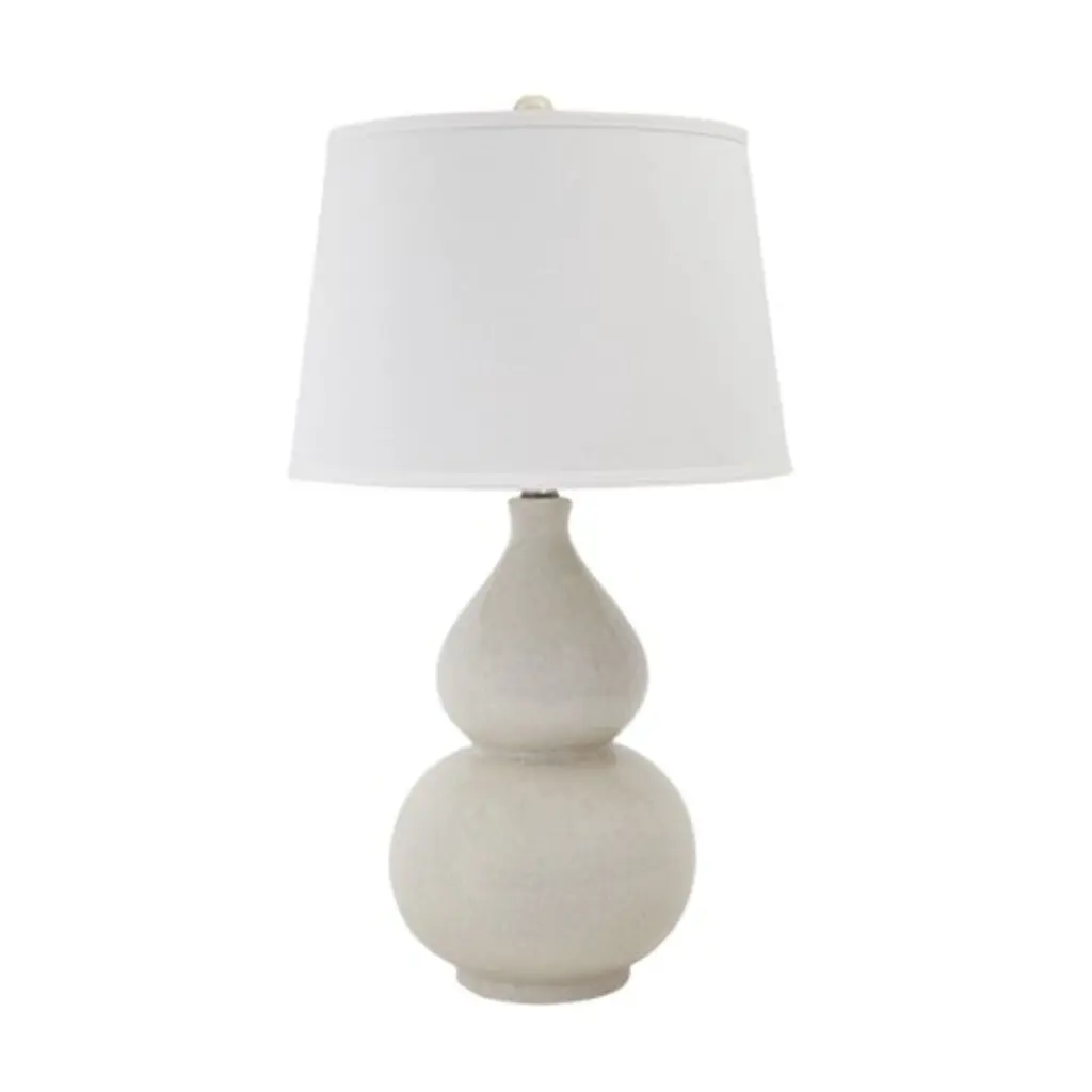 The Hugo Table Lamp by Regina Andrew is a chic, contemporary design with a cool, textural feel. A softly shaped body with a stacked look features a special glazing technique that dresses up this hand-shaped earthenware piece that was created by artisans. A subtle pattern evokes a sense of movement and, thanks to the light from above, showcases a mix of highs and lows that bring this design to life. Topped with a classic, crisp shade and spherical finial, this table lamp offers an even, welcoming layer of illumination to its surroundings.