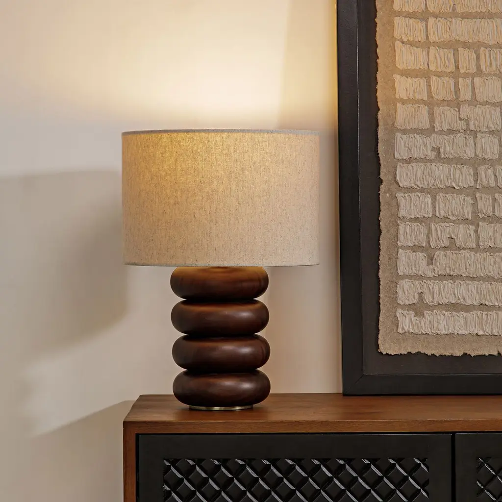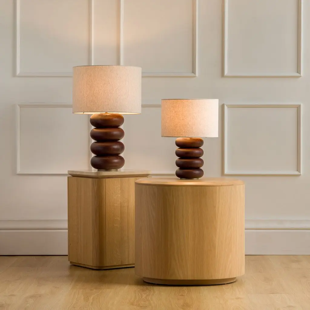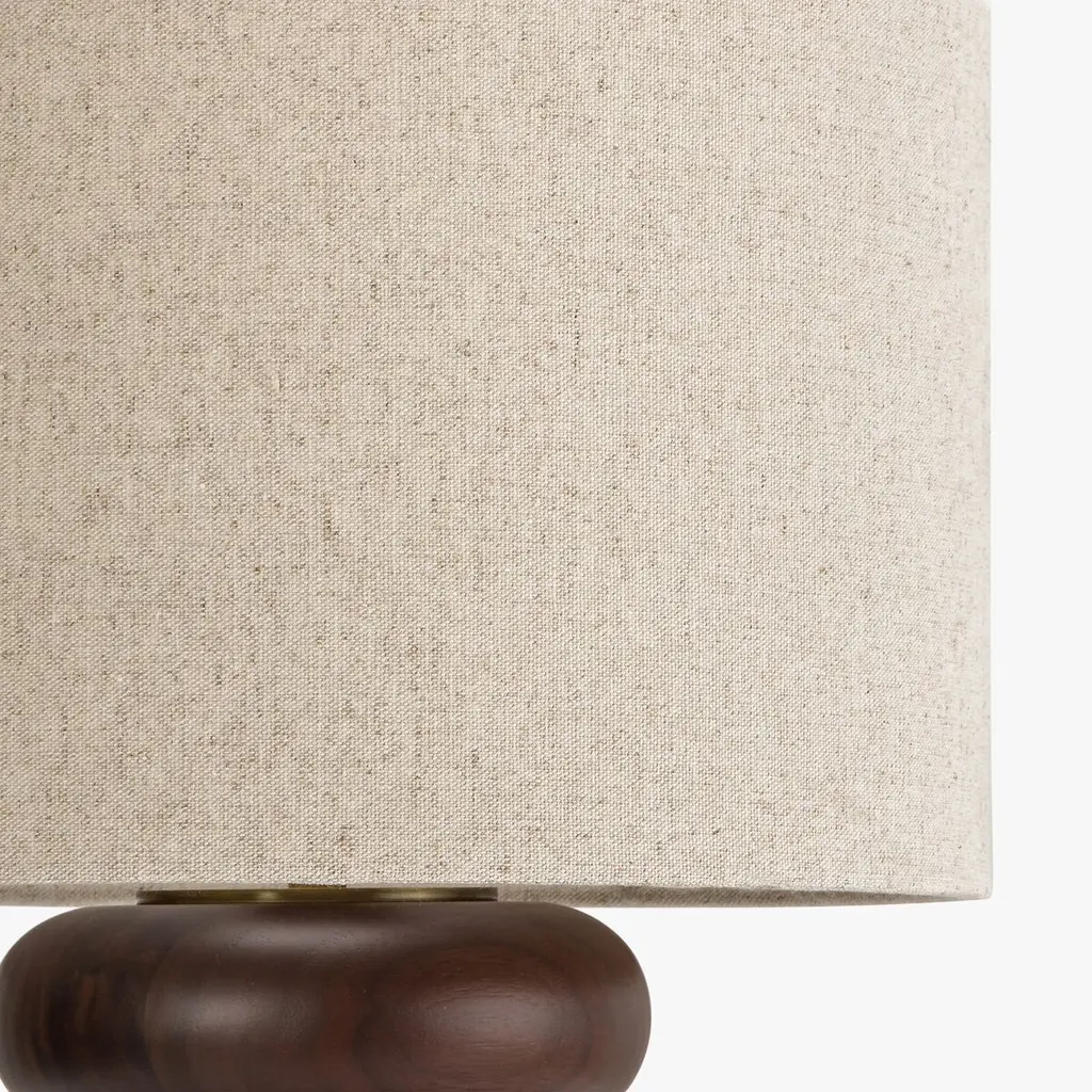 The Hugo table lamp is a testament to exquisite craftsmanship, featuring a base crafted from solid oak wood, celebrated for its durability and beautiful grain patterns. It is topped with a shade made of 100% natural linen, which produces a soft, diffused light that brings a sense of calm to any space. The linen’s natural texture adds depth and sophistication, enhancing the lamp’s overall design. An antique brass finish graces the bulb holder, while a convenient dimmer switch allows for customizable lighting to suit any mood or occasion.