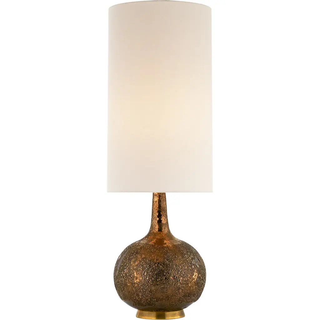 Bring elemental flair to your living space with the Hunlen Table Lamp by Visual Comfort Signature, formerly known as Visual Comfort, This furnishment is made of fine ceramic and is formed in a distinctly rounded fashion. The aesthetic appeal of the lamp is rooted in the visual blend of indoor luxury and terrestrial exploration. The high-sheen component to the lamp contrasts the geological motif exhibited throughout the fixture’s body. The brightness level of the diffused light from within the elongated shade can be adjusted when paired with a dimmer.