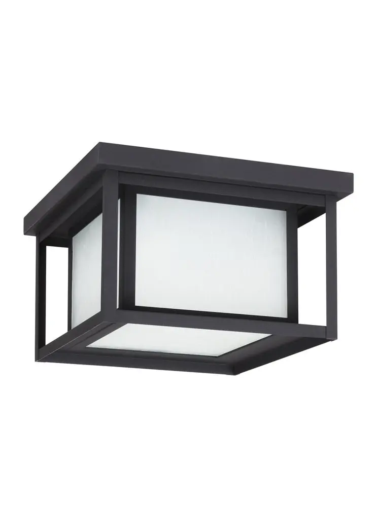 The Hunnington two light outdoor ceiling fixture in weathered pewter is an ENERGY STAR½ qualified lighting fixture that uses LED bulbs to save you both time and money. A bit of Shaker minimalism mixed with Arts and Crafts styling defines the transitional Hunnington outdoor lighting collection by . Equally at home in the city or the country, this timeless style will enhance the appearance of a home's entrance with its clean, crisp lines. Offered in Weathered Pewter or Black finishes, with either Etched Seeded glass or Clear Seeded glass, the assortment includes a one-light outdoor pendant, small and large one-light outdoor wall lanterns, a one-light out door post lantern and a two-light outdoor ceiling flush mount. Both incandescent lamping and ENERGY STAR-qualified LED lamping (for those fixtures with the Etched Seeded glass) are available for most of the fixtures, and some can easily convert to LED by purchasing LED replacement lamps sold separately (for those with the Clear Seeded glass).