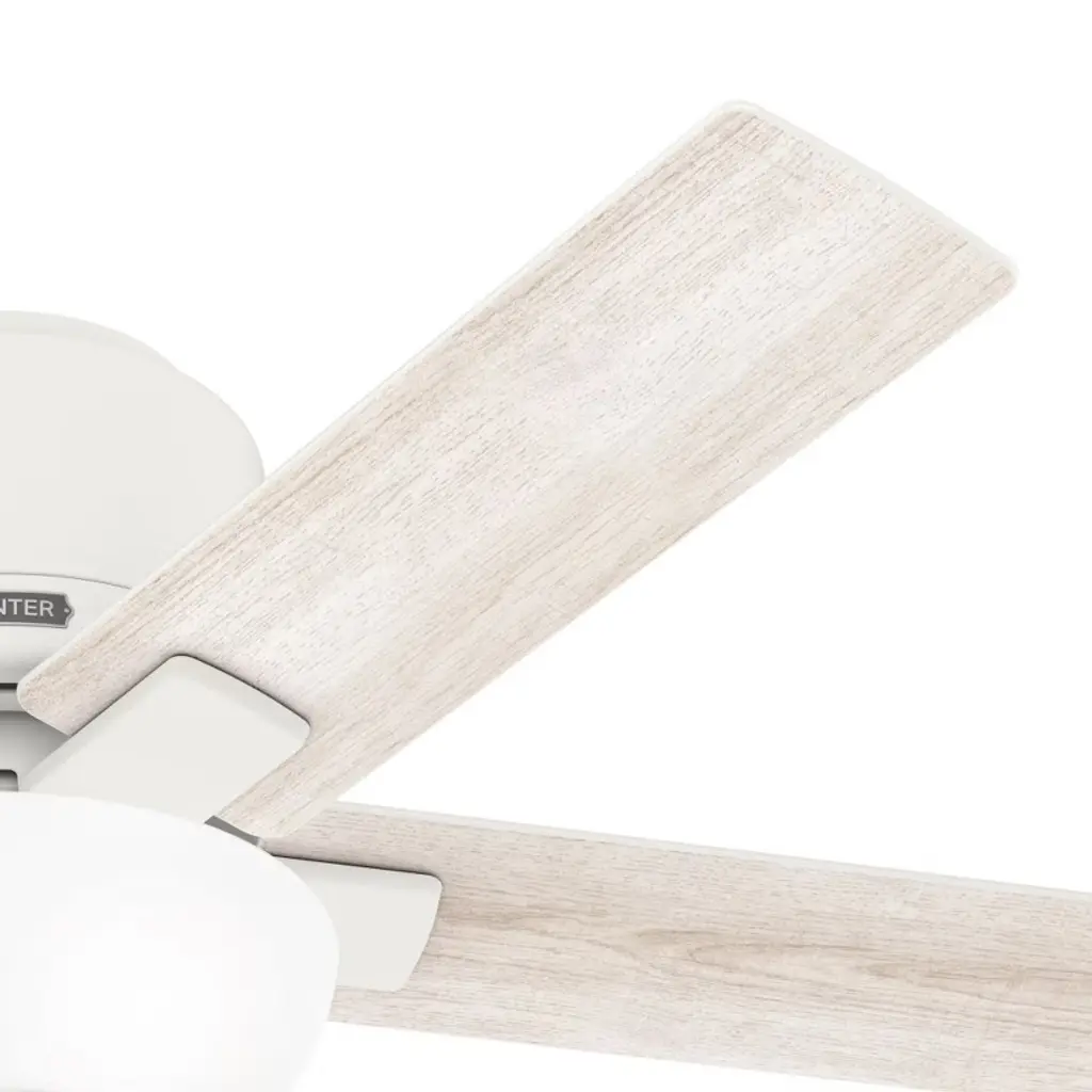 Hunter 44" Fitzgerald Lighted Ceiling Fan Matte White Finish With Bleached Alder Blades For Small Spaces