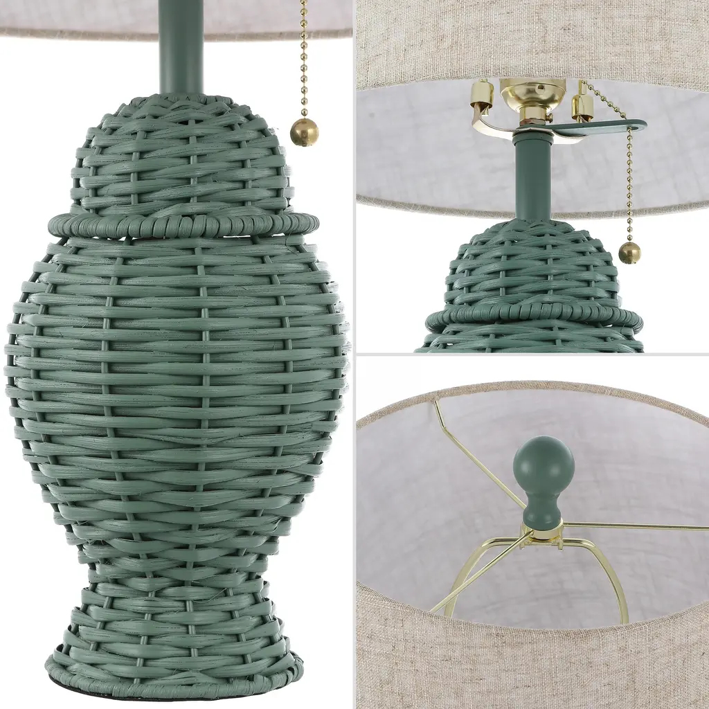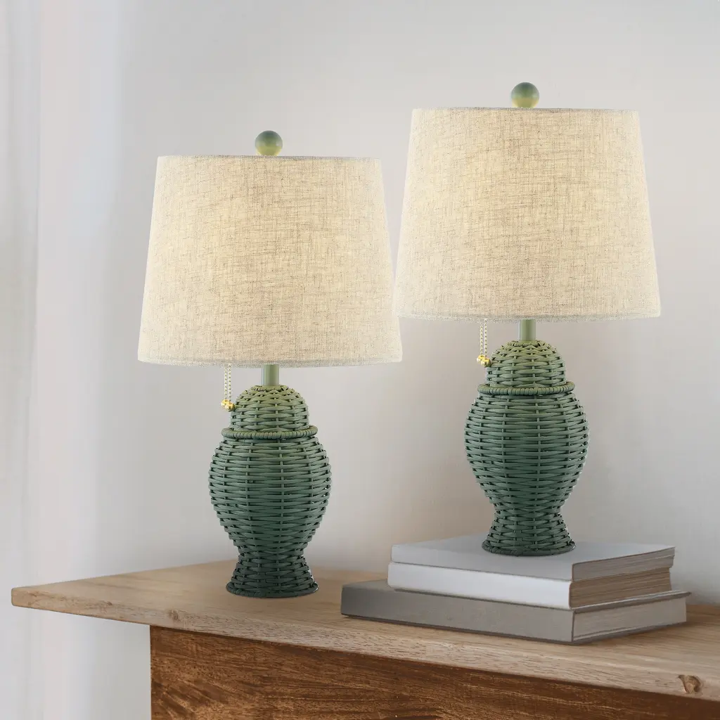 Our pair of classic midcentury wicker lamps features a woven ginger-jar base with a linen shade. These 20.5" tall lamps make a perfect pair for the bedroom, living room, or entry console. The timeless silhouette is ideal for a mid-century home, rustic cottage or beach house.Features:Dimensions:About us:You see a lamp.We see a decorative work of art.A perfectly curved shade casts a dramatic shadow on a floor. A silk cord you never want to hide. Compatible with LED lightbulbs: as easy on the environment as they are on the eyes. The JONATHAN Y Lighting collection considers every detail from impeccably sourced materials to designer styling. And our prices are so attractive, we've transformed a functional necessity into a fashion accessory.JONATHAN Y Lighting - a fashion revolution in home decor.