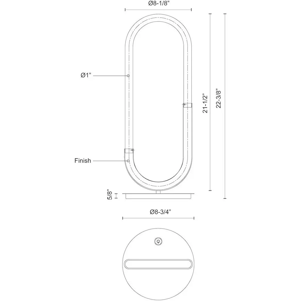 Steel base with die-cast aluminum body, acrylic frosted tube, matte powder-coated or plated finish