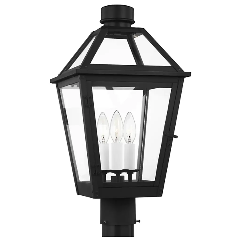 Illuminate outdoor porches and pathways with the inspired, intricate presence of the Hyannis Outdoor Post Light from Visual Comfort Studio, formerly known as Chapman & Myers, The metal framework flares out upward from a round post mount, seating small candelabra lamping inside beneath clear glass panes with an inward-beveling upper surface. The glass gentles glare from the wet-listed lamping, while a small, hinged door allows easy access to maintain it. Excellent as a single statement or in a matched, coordinated set. The post is sold separately.