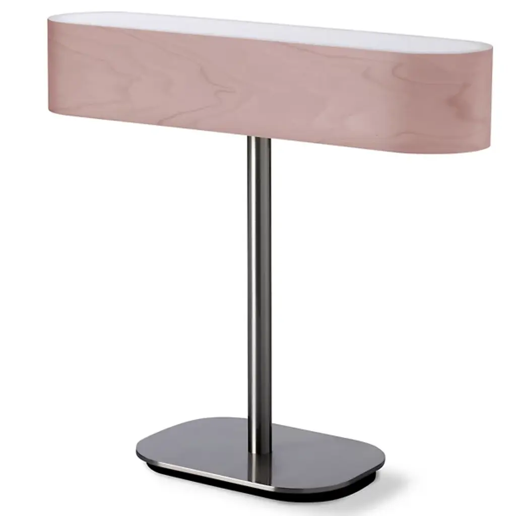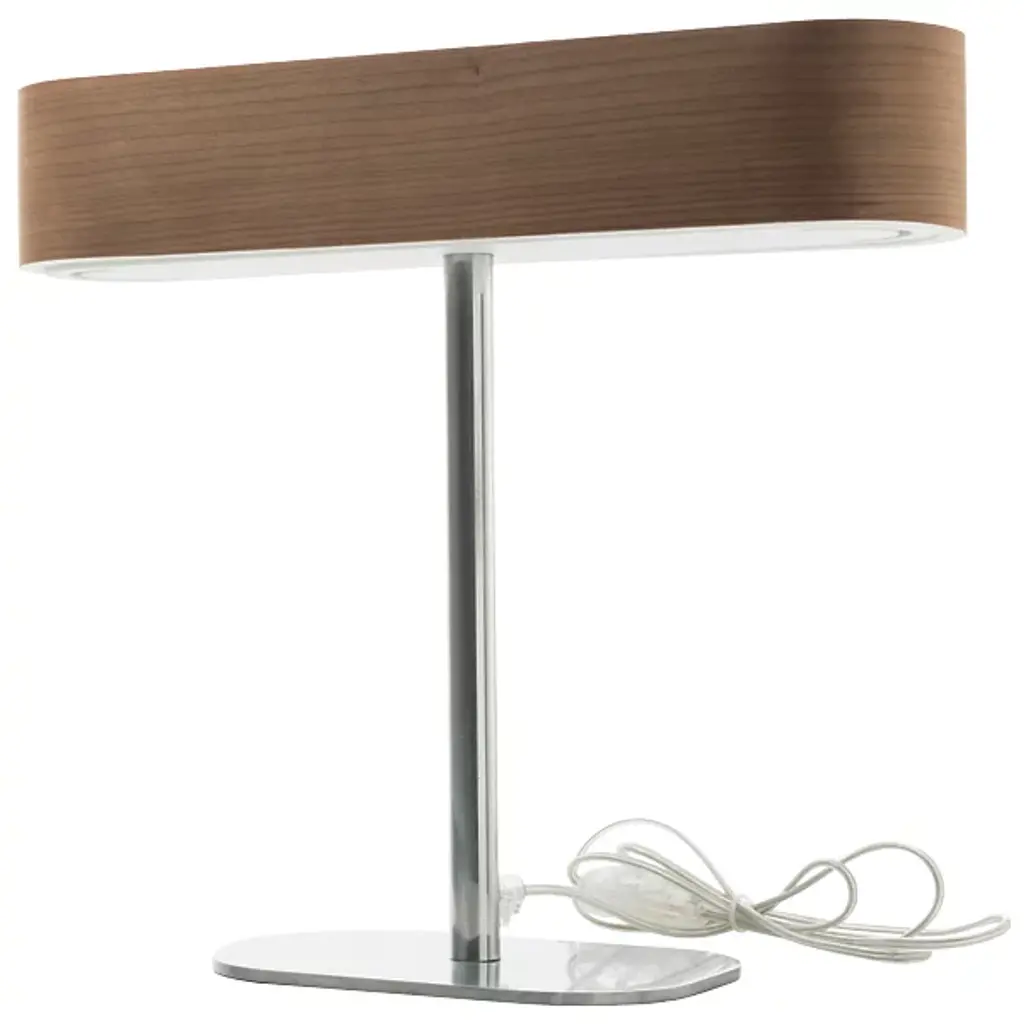 The LZF I-Club Table Lamp has an elegant lozenge-shape as the basis for this family of direct and indirect lighting. I-Club provides both warm ambient light created by the glowing veneer surround and good task lighting through the polycarbonate diffuser. The I-Club Table Lamp features a Natural timber wood veneer shade in a variety of colors and a Nickel base and stem.