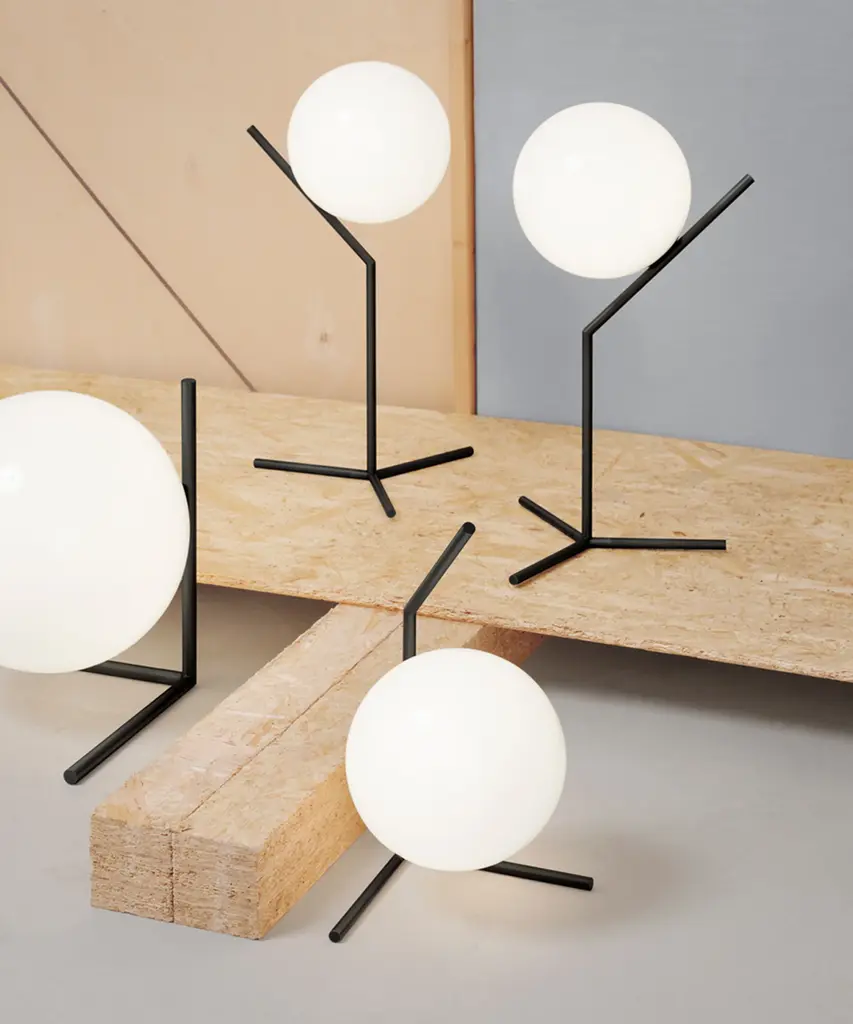Like the other pieces in his IC Light Series, the IC Lights table balances designer Michael Anastassiades' love of industrial simplicity with intricate symbolism. It provides diffused light through a mouth-blown opaline sphere, which is held up by a brass-plated steel frame. There is a dimmer on the power cord. IC Lights table lamp comes in three models in black, brass or chrome finish:- IC Lights T1 High: height 20.8"; base width 12.6"- IC Lights T1 Low: height 15"; base width 6.9"- IC Lights T2: height 13.7"; base width 11" Discover the complete IC Lights collection here. The inspiration behind the design: Poise is powerful: That's the message Michael Anastassiades offers with his IC Light Series. From the skillful balance of the sphere and baton that invokes thoughts of a dexterous juggler's act to the lamp's name-IC, a reference to the identity code used to evaluate immigrants entering the UK-the designer makes a commanding statement. This authentic design is produced in Italy exclusively by Flos.