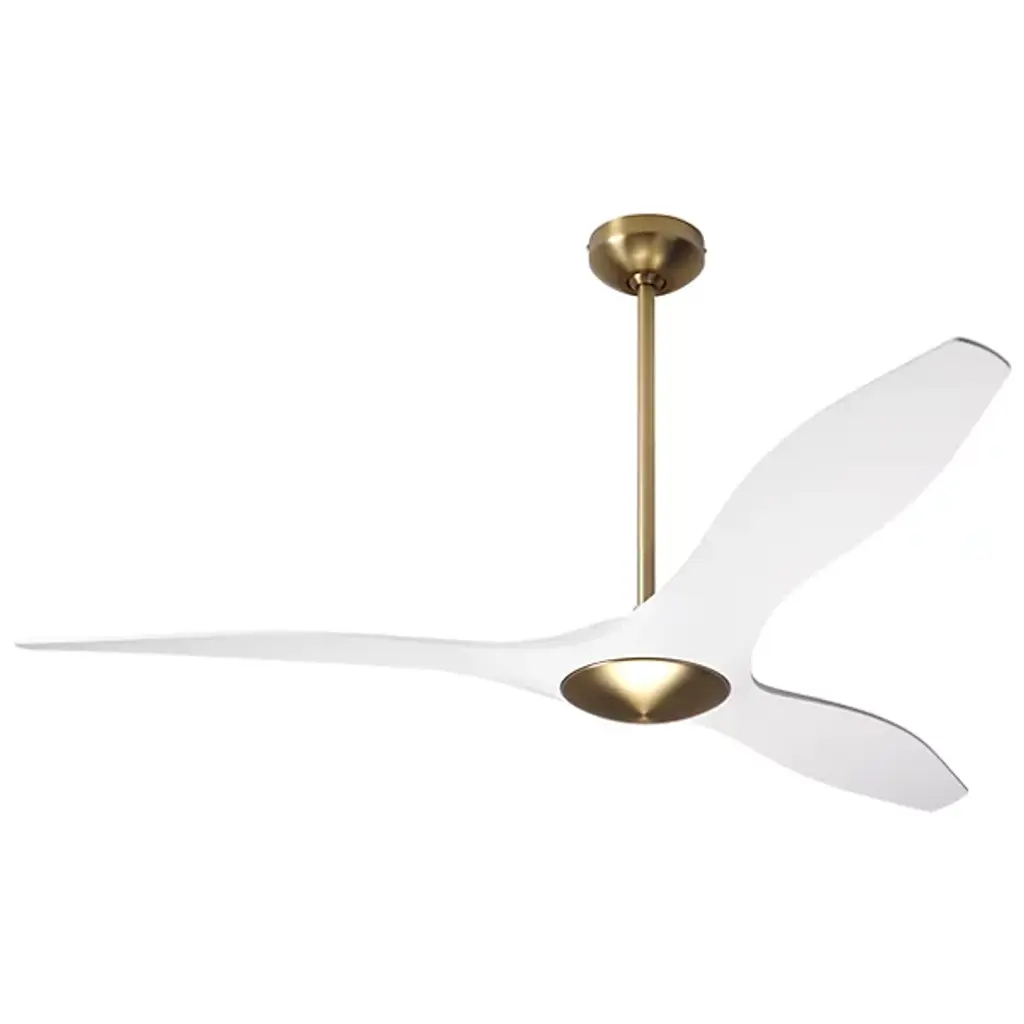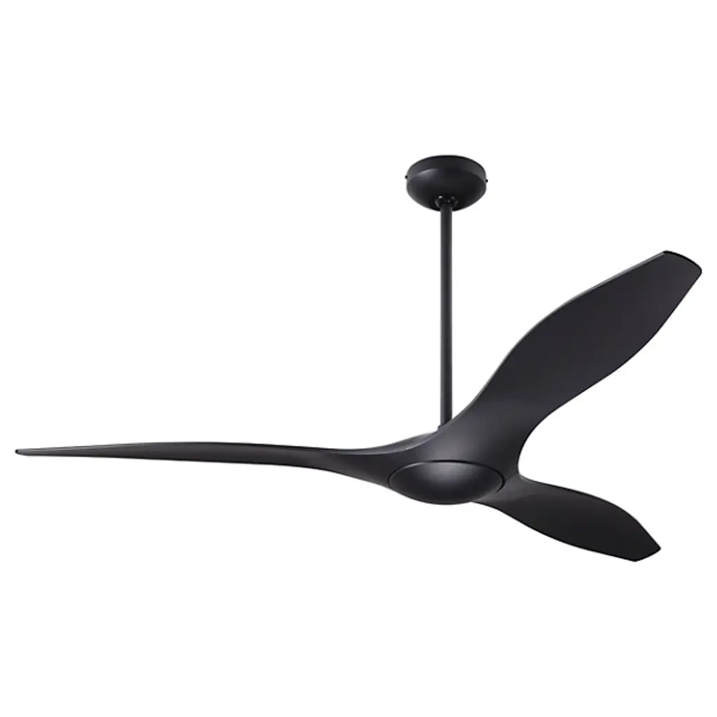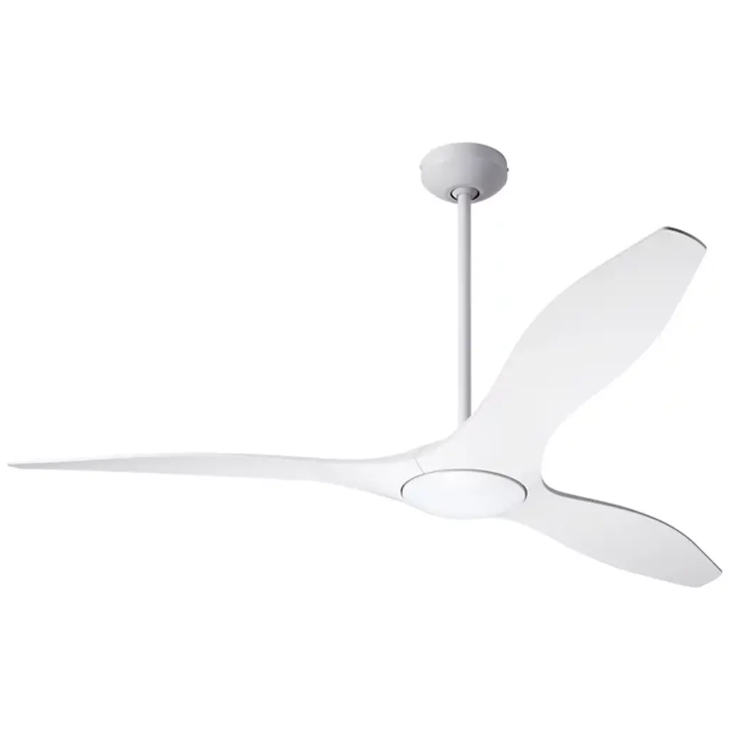 The IC/Brisa DC Ceiling Fan from Modern Fan Company adds a pleasing sculptural presence to inside spaces. An articulate modern design descending from a long downrod places a small, though strong DC motor in a central disc hub, accompanied by a damp-rated LED lamp set into the housing’s base. Three injection-molded ABS blades extend outward from the central hub, accompanied by the gentle glow of the lamping and embellishing the fan’s otherwise simple design with their inspired curvature.