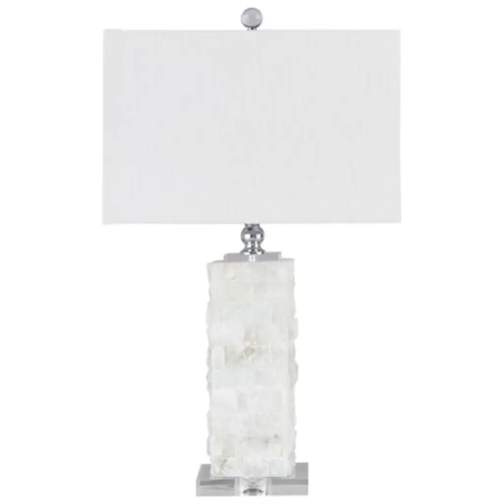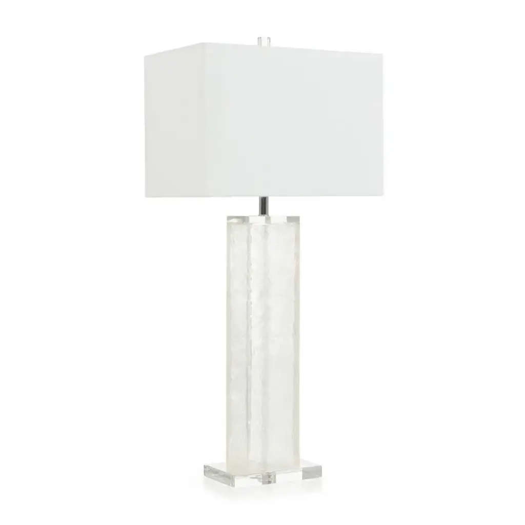 This column of acrylic is finished on the inside with an abstract texture which makes this lamp a modern piece of art for any place in your home.