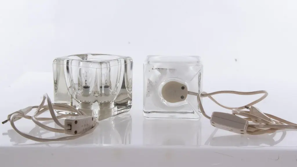 Iced Glass Cube Table Lamp By Peill & Putzler 1970s, Set Of 2