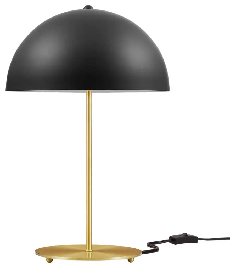 Enhance the lighting decor in your bedroom, living room, office, or entryway with the industrial-inspired Ideal Metal Table Lamp. This side table lamp brings illumination and warmth into mid-century modern, contemporary, minimalist, or eclectic decors. The Ideal Office Desk Lamp shines with subtle vintage appeal, featuring a smooth metal dome lampshade for superior task lighting. This contemporary living room light is enhanced by a satin brass rod and round base with a black power cord and a convenient on/off switch. This bedside lamp requires 1 E26 60W max bulb or LED equivalent (not included). Compatible with dimmer switches (not included). Assembly required. Clean with a soft, damp cloth.Set Includes:1 - IdealMetal Table LampSatin Brass BaseBlack Power Cord With On/Off SwitchBulb: 1 E26 60W Max (Not Included)LED CompatibleDimmable (Switch Not Included)Assembly requiredProduct Color : Black Satin BrassAssembly Required : YESOverall Product Dimensions: 12"L x 12"W x 18"HShade Dimensions: 12"W x 6"HBase Dimensions: 8"L x 8"WProduct Weight : 6 lbs.Product Materials : 1xE26 lampholder, Iron shade/ tube/base,Black PVC cable, Length of Cord: 71in, Type of Bulb: E26, Wattage: 1• 60W, Number of Bulbs: 1pc(bulb not provided)