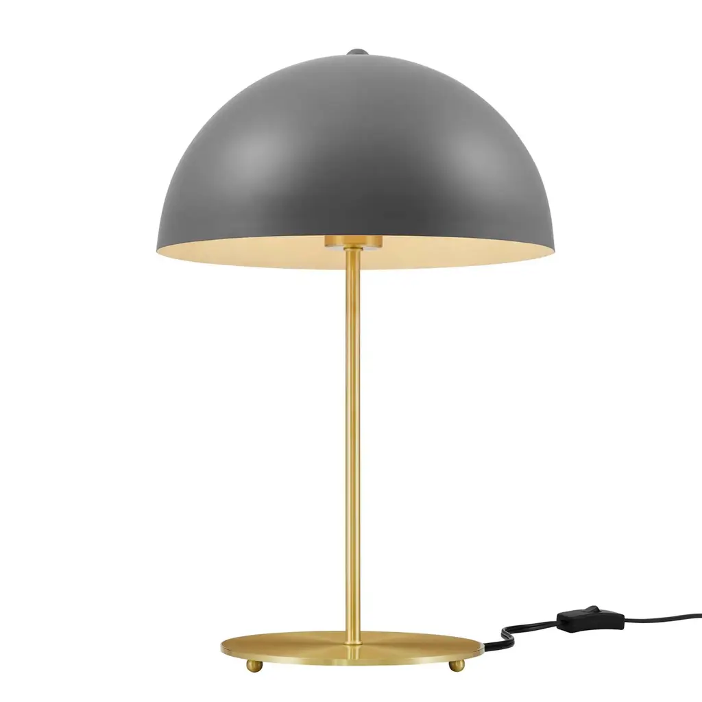 Enhance the lighting decor in your bedroom, living room, office, or entryway with the industrial-inspired Ideal Metal Table Lamp. This side table lamp brings illumination and warmth into mid-century modern, contemporary, minimalist, or eclectic decors. The Ideal Office Desk Lamp shines with subtle vintage appeal, featuring a smooth metal dome lampshade for superior task lighting. This contemporary living room light is enhanced by a satin brass rod and round base with a black power cord and a convenient on/off switch. This bedside lamp requires 1 E26 60W max bulb or LED equivalent (not included). Compatible with dimmer switches (not included). Assembly required. Clean with a soft, damp cloth.