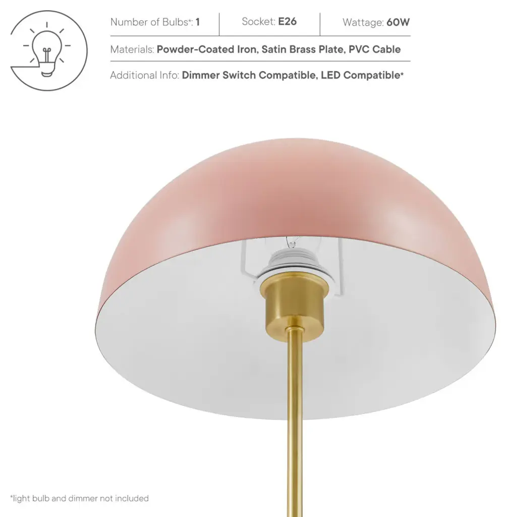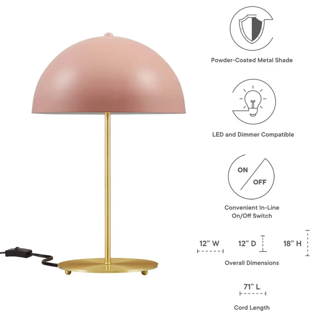 Enhance the lighting decor in your bedroom, living room, office, or entryway with the industrial-inspired Ideal Metal Table Lamp. This side table lamp brings illumination and warmth into mid-century modern, contemporary, minimalist, or eclectic decors. The Ideal Office Desk Lamp shines with subtle vintage appeal, featuring a smooth metal dome lampshade for superior task lighting. This contemporary living room light is enhanced by a satin brass rod and round base with a black power cord and a convenient on/off switch. This bedside lamp requires 1 E26 60W max bulb or LED equivalent (not included). Compatible with dimmer switches (not included). Assembly required. Clean with a soft, damp cloth.Set Includes:1 - IdealMetal Table LampSatin Brass BaseBlack Power Cord With On/Off SwitchBulb: 1 E26 60W Max (Not Included)LED CompatibleDimmable (Switch Not Included)Assembly requiredProduct Color : Pink Satin BrassAssembly Required : YESOverall Product Dimensions: 12"L x 12"W x 18"HShade Dimensions: 12"W x 6"HBase Dimensions: 8"L x 8"WProduct Weight : 6 lbs.Product Materials : 1xE26 lampholder, Iron shade/ tube/base,Black PVC cable, Length of Cord: 71in, Type of Bulb: E26, Wattage: 1• 60W, Number of Bulbs: 1pc(bulb not provided)