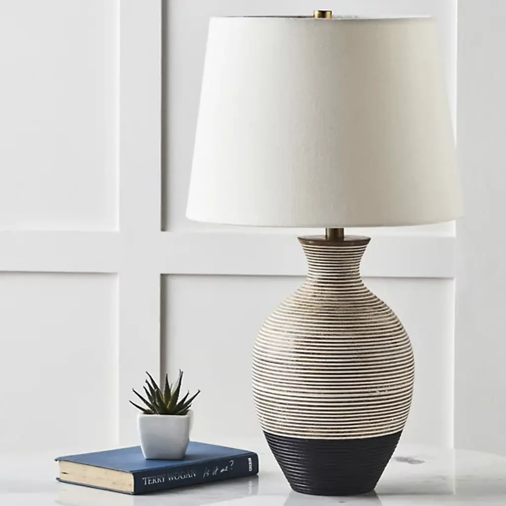 Gorgeous mango wood forms the Ignacio Table Lamp from Renwil. An off-white cotton shade gives this table lamp a serene appearance while emanating light from an LED. When paired with natural influences, Ignacio’s design has an opportunity to pop. Your lamp creates an artistic focal point for your side tabletop or nightstand.
