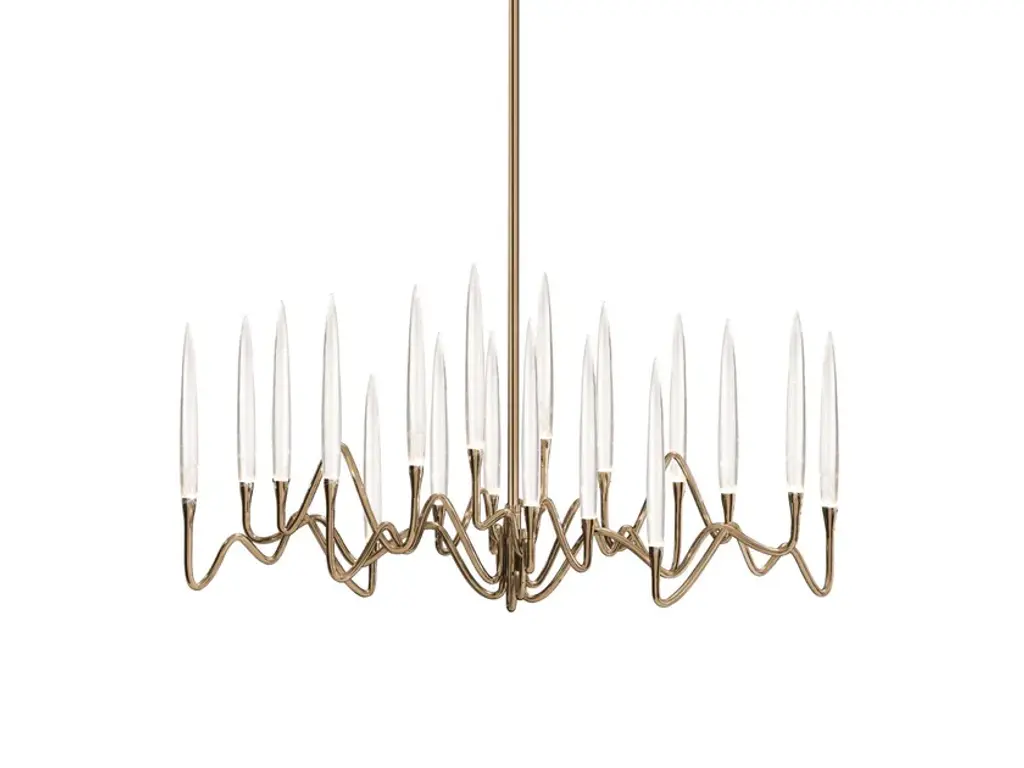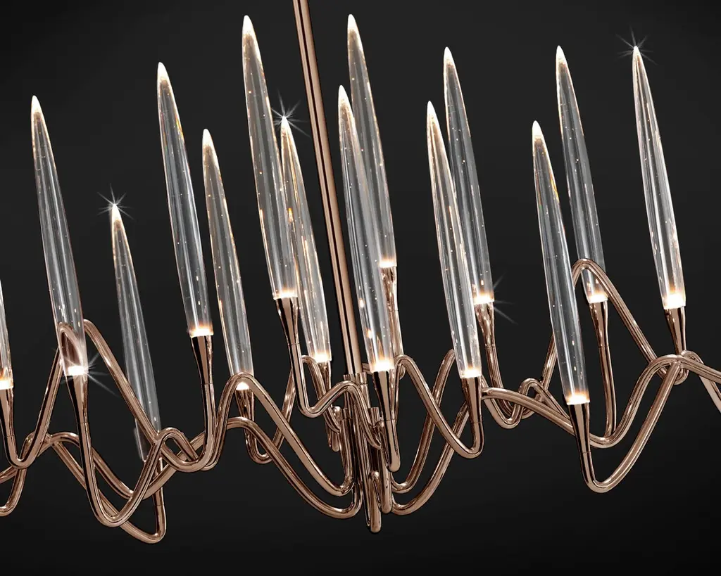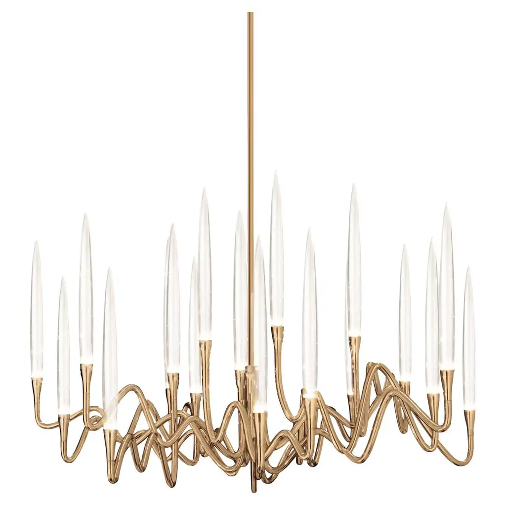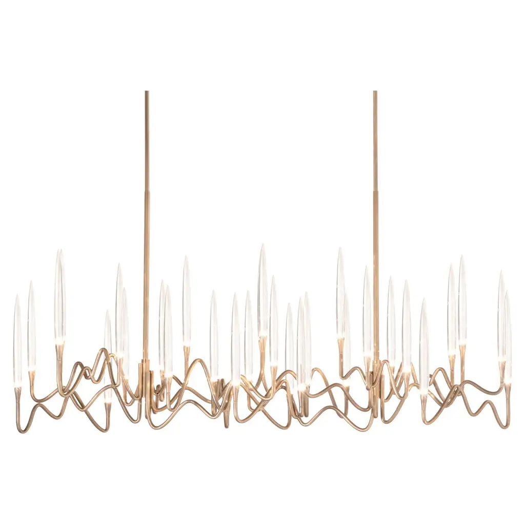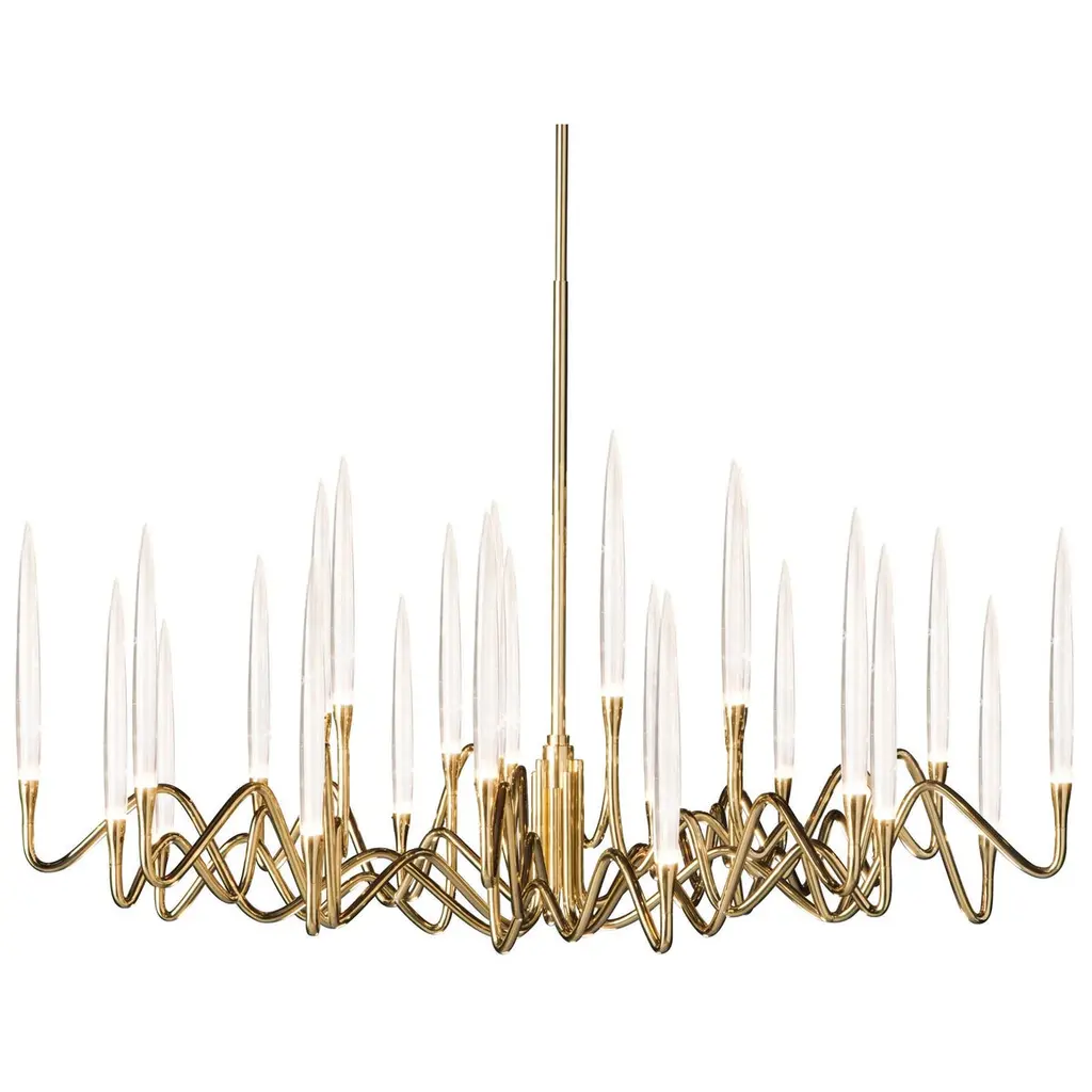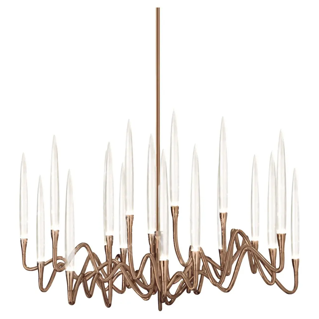 Inspired by Arabic calligraphic art and the icon of the classical candelabrum is Il Pezzo 3, a collection of lamps with a hand-forged brass structure and elegant “candles” crafted from hand blown crystal, according to the noble Tuscan artisan tradition. The candles are illuminated using the latest LED technology, creating a sophisticated and romantic light. Experiencing the exquisite craftsmanship of this piece, combined with highly advanced technology, is truly fascinating.Notably, the lamp features a distinctive element, its “Missing Piece”(“Pezzo Mancante” in Italian): a small brass cylinder containing the serial number, guaranteeing its authenticity and individuality.Custom finishes are also available to suit every preference.All our masterpieces are meticulously crafted in our Atelier located in Florence, Italy, from a small team of people driven by a shared passion for quality and beauty. We constantly strive to create unparalleled works of art, where each piece is a testament to our commitment to craftsmanship and innovation.Structure: Hand carved brassFinish: bronzeDiffusers: solid crystalLight source: 2.700K LED, CRI>90, dimmable.Size: 103 cm long, 40.5" long.ETL certified UL and CSA standards compliant.The standard overall height is 135 cm - 53.2". The stem is telescopic and it can be a little adjusted on site. The overall height can be custom made.