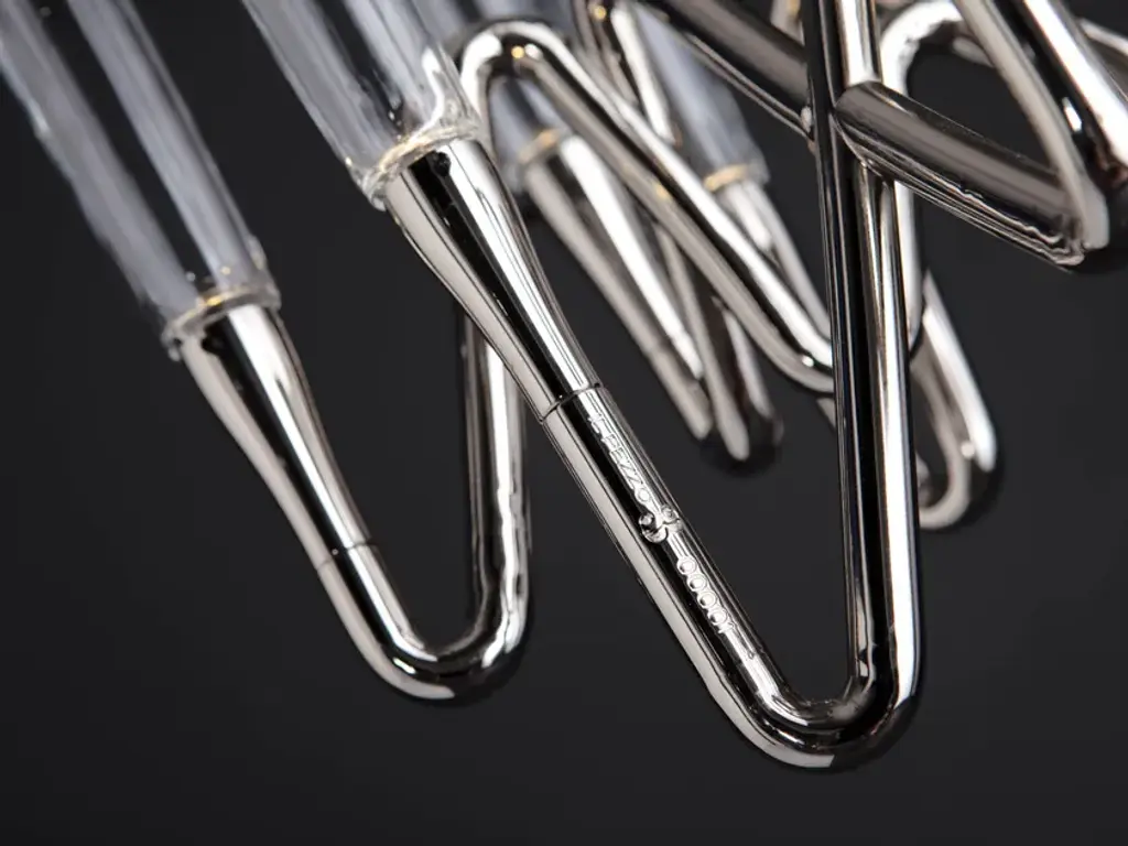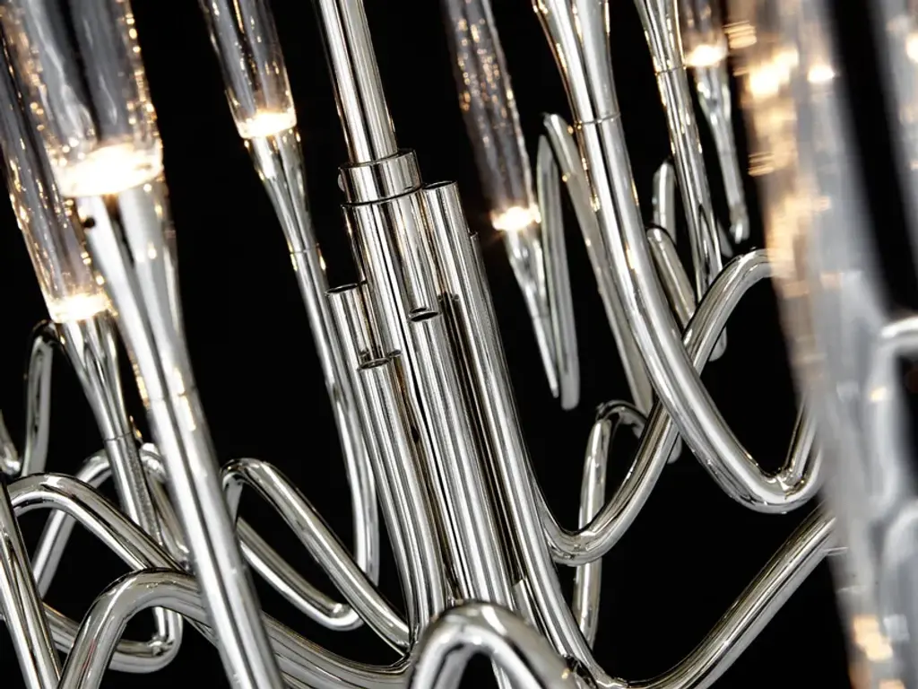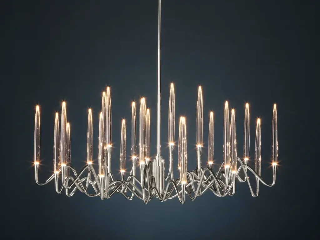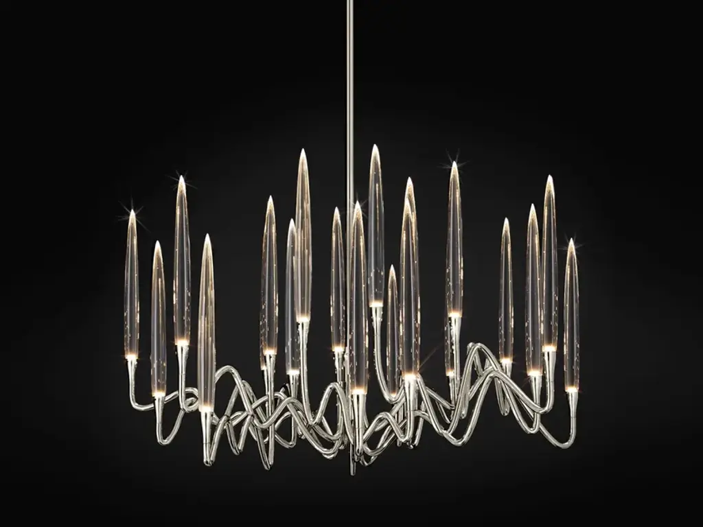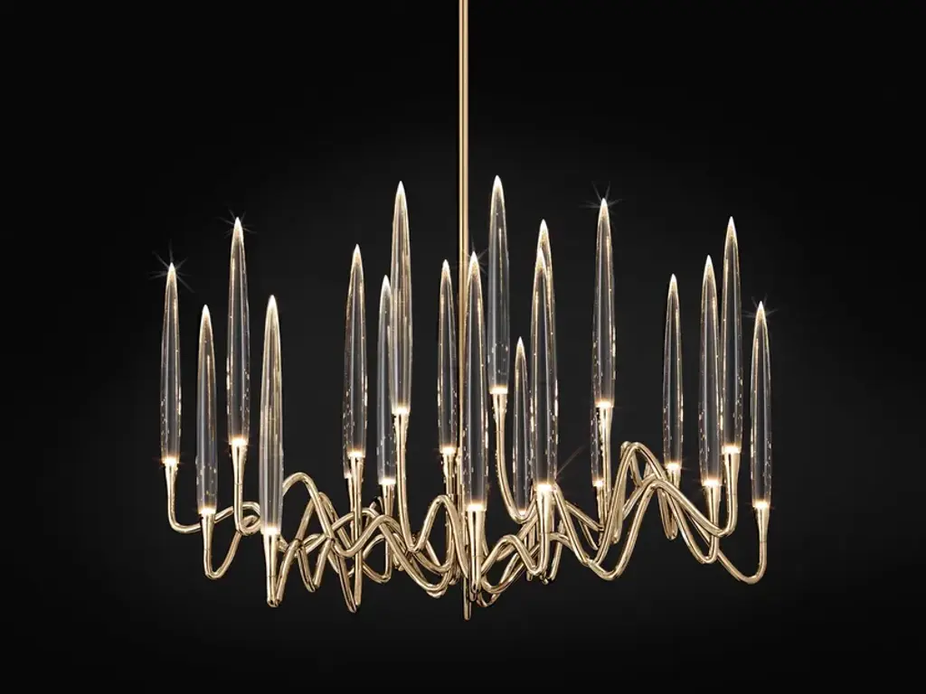 Inspired by Arabic calligraphic art and the icon of the classical candelabrum is Il Pezzo 3.This collection of lamps praises a hand-forged brass structure and elegant “candles” crafted from hand blown crystal, according to the noble Tuscan artisan tradition.They are illuminated using the latest LED technology, creating a sophisticated and romantic light. Experiencing the exquisite craftsmanship of these pieces, combined with highly advanced technology, is truly fascinating.Notably, the lamp features a distinctive element, its “Missing Piece”(“Pezzo Mancante” in Italian): a small brass cylinder containing the serial number, guaranteeing its authenticity and individuality.Custom finishes are also available to suit every preference.All our masterpieces are meticulously crafted in our Atelier located in Florence, Italy, from a small team of people driven by a shared passion for quality and beauty. We constantly strive to create unparalleled works of art, where each piece is a testament to our commitment to craftsmanship and innovation.