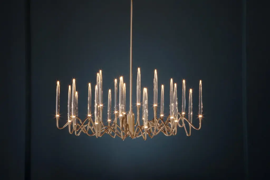 Inspired by Arabic calligraphic art and the icon of the classical candelabrum is Il Pezzo 3, a collection of lamps with a hand-forged brass structure and elegant “candles” crafted from hand blown crystal, according to the noble Tuscan artisan tradition. The candles are illuminated using the latest LED technology, creating a sophisticated and romantic light. Experiencing the exquisite craftsmanship of this piece, combined with highly advanced technology, is truly fascinating.Notably, the lamp features a distinctive element, its “Missing Piece”(“Pezzo Mancante” in Italian): a small brass cylinder containing the serial number, guaranteeing its authenticity and individuality.Custom finishes are also available to suit every preference.All our masterpieces are meticulously crafted in our Atelier located in Florence, Italy, from a small team of people driven by a shared passion for quality and beauty. We constantly strive to create unparalleled works of art, where each piece is a testament to our commitment to craftsmanship and innovation.Structure: hand carved brassFinish: BronzeDiffusers: Solid crystalLight source: 2.700K LED, CRI>90, dimmableSize: Diameter 120 cm - 47.2".ETL certified UL and CSA standards compliant.The standard overall height is 135 cm - 53.2". The stem is telescopic and it can be a little adjusted on site. The overall height can be custom made.