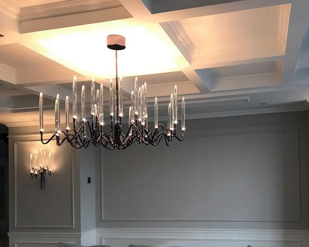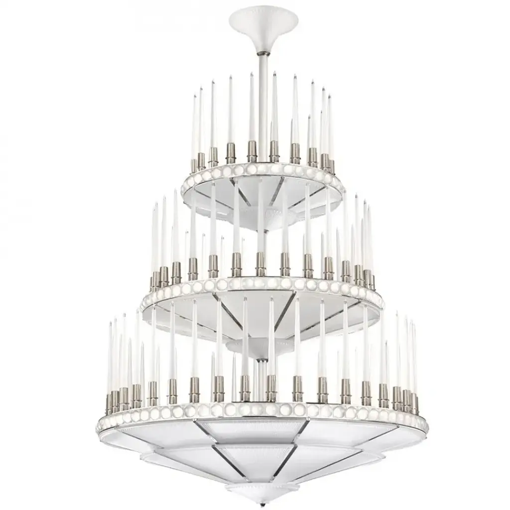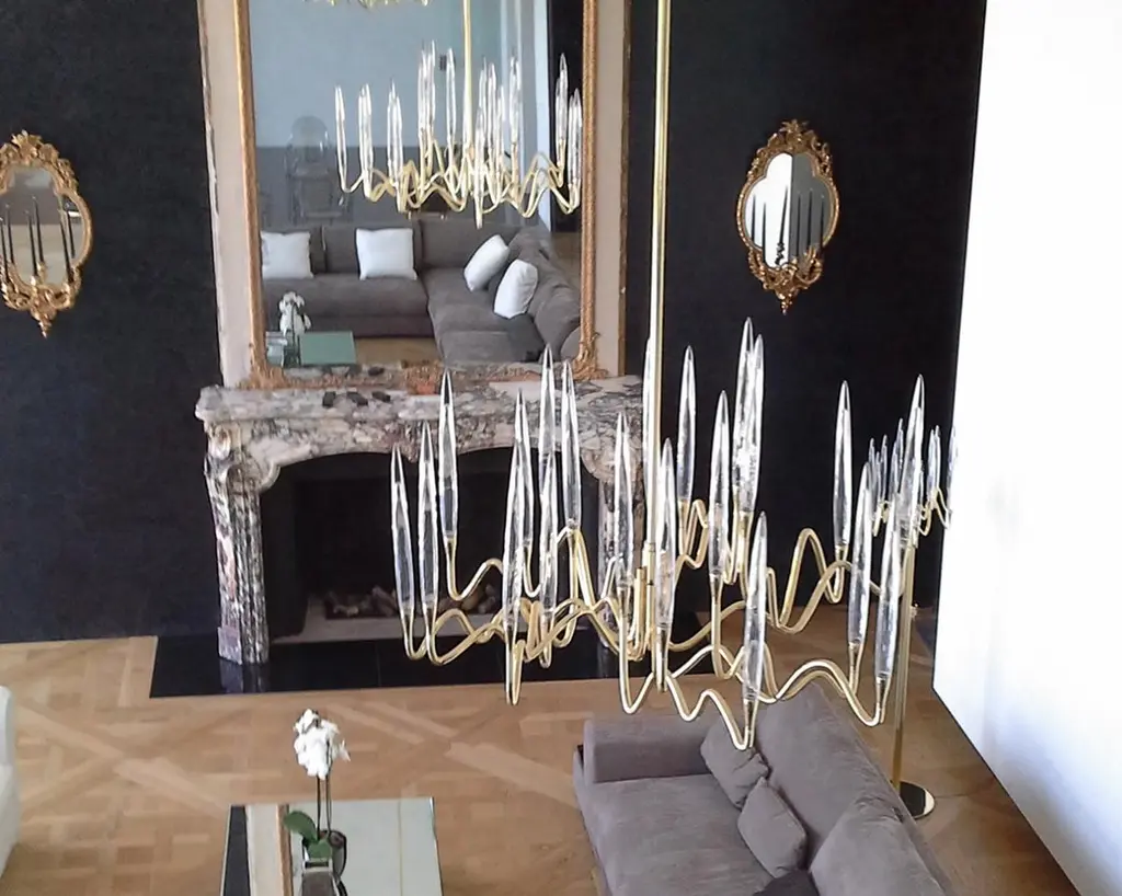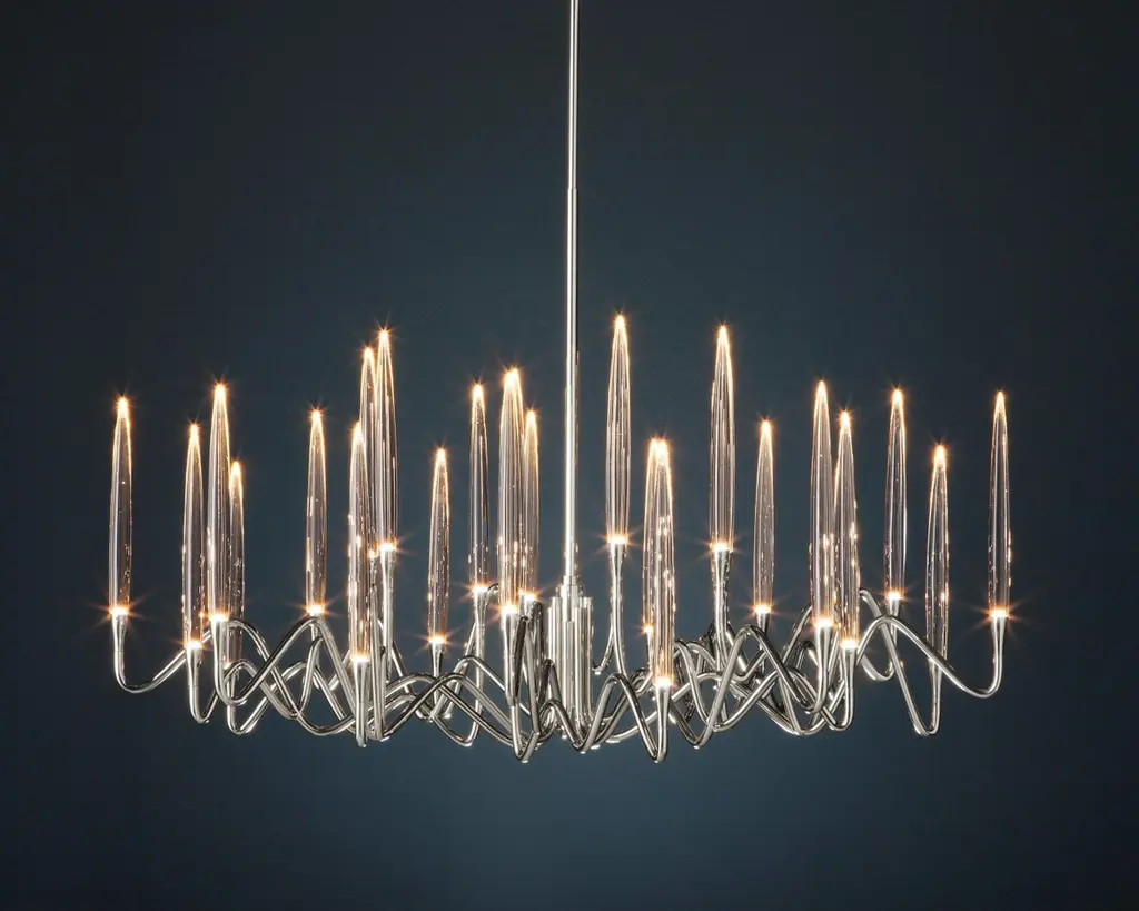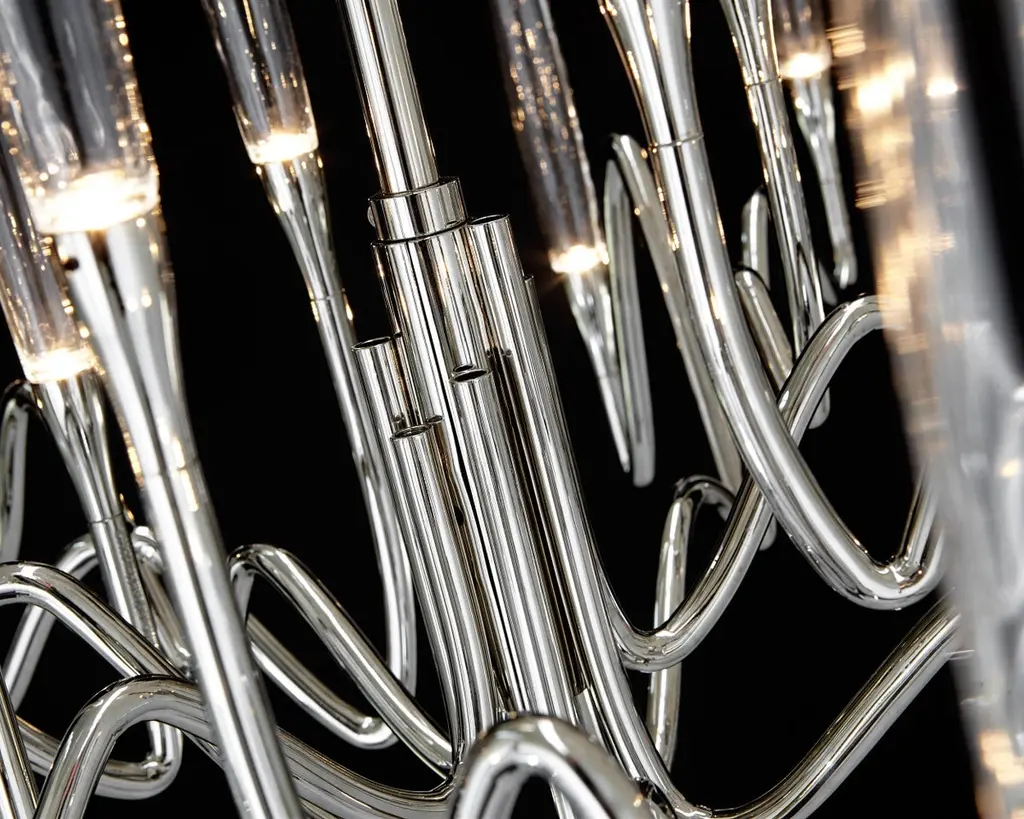 Inspired by Arabic calligraphic art and the icon of the classical candelabrum is Il Pezzo 3, a collection of lamps with a hand-forged brass structure and elegant “candles” crafted from hand blown crystal, according to the noble Tuscan artisan tradition. The candles are illuminated using the latest LED technology, creating a sophisticated and romantic light. Experiencing the exquisite craftsmanship of this piece, combined with highly advanced technology, is truly fascinating.Notably, the lamp features a distinctive element, its “Missing Piece”(“Pezzo Mancante” in Italian): a small brass cylinder containing the serial number, guaranteeing its authenticity and individuality.Custom finishes are also available to suit every preference.All our masterpieces are meticulously crafted in our Atelier located in Florence, Italy, from a small team of people driven by a shared passion for quality and beauty. We constantly strive to create unparalleled works of art, where each piece is a testament to our commitment to craftsmanship and innovation.Structure: Hand-carved brassFinish: NickelDiffusers: Solid crystalLight source: 2.700K LED, CRI>90, dimmableSize: diameter 120 cm - 47.2".ETL certified UL and CSA standards compliant.The standard overall height is 135 cm - 53.2". The stem is telescopic and it can be a little adjusted on site. The overall height can be custom made.
