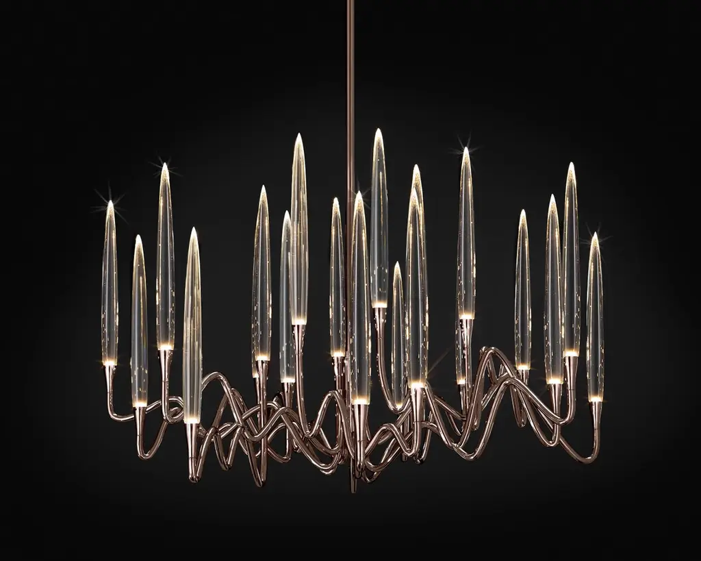 Inspired by Arabic calligraphic art and the icon of the classical candelabrum is Il Pezzo 3, a collection of lamps with a hand-forged brass structure and elegant “candles” crafted from hand blown crystal, according to the noble Tuscan artisan tradition. The candles are illuminated using the latest LED technology, creating a sophisticated and romantic light. Experiencing the exquisite craftsmanship of this piece, combined with highly advanced technology, is truly fascinating.Notably, the lamp features a distinctive element, its “Missing Piece”(“Pezzo Mancante” in Italian): a small brass cylinder containing the serial number, guaranteeing its authenticity and individuality.Custom finishes are also available to suit every preference.All our masterpieces are meticulously crafted in our Atelier located in Florence, Italy, from a small team of people driven by a shared passion for quality and beauty. We constantly strive to create unparalleled works of art, where each piece is a testament to our commitment to craftsmanship and innovation.Structure: hand-carved brassFinish: bronzeDiffusers: solid crystalLight source: 2.700K LED, CRI>90, dimmableSize: diameter 85 cm - 33.4".ETL certified UL and CSA standards compliant.The standard overall height is 135 cm - 53.2". The stem is telescopic and it can be a little adjusted on site. The overall height can be custom made.