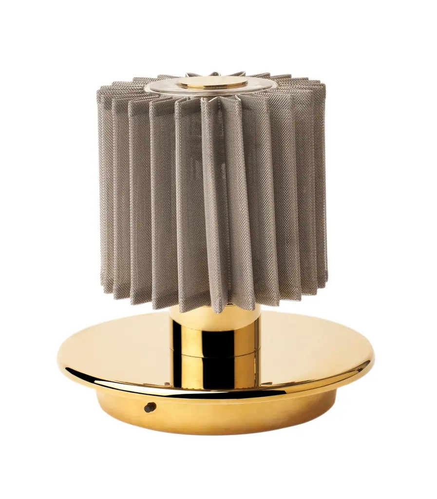 In the sun table lamp by Dominique Perrault & Gaëlle Lauriot-PrévostDimensions: D 13 x H 12.7 cmMaterials: Steel, aluminumAvailable in different colors.All our lamps can be wired according to each country. If sold to the USA it will be wired for the USA for instance.Cordless table lamp powered by a rechargeable battery. Its 5-position switch lets you change the light intensity.As part of the renovation of the Pavillion Dufour at the Chateaude Versailles, Dominique Perrault and Gaëlle Lauriot-Prévost cameup with a homage to the Sun King. The " In The Sun " collectionradiates festive hues of gold and silver in conjunction with softly castshadows. The result is a very special atmosphere in the rooms theyare used to light.Dominique Perrault was born in 1953 in Clermont-Ferrand, he studied in Paris and received his diploma as an architect from the École des Beaux-Arts in 1978, He received a further degree in Urbanism at the École Nationale des Ponts et Chaussées in 1979, as well as a Master's in History at the EHESS in 1980. He created his own firm in 1981 in Paris.Gaëlle Lauriot-Prévost's carrer is closely linked to that of Dominique Perrault, as she conceives and supervises all projects of the studio as its art director. Perrault's work is also that of Gaëlle Lauriot-Prévost, a product of a mutual collaboration for more than over twenty years. Educated at the school Camondo, she joined Perrault in 1989.