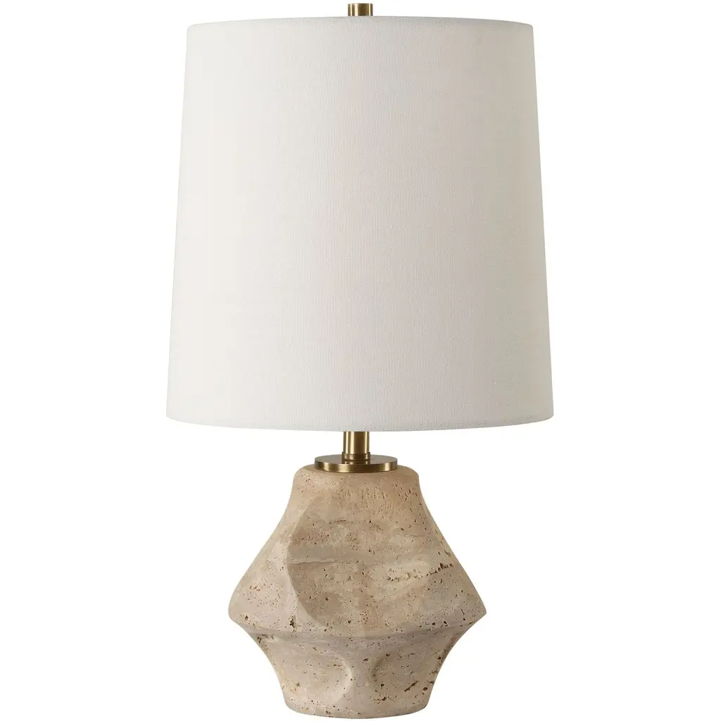 Indent 16.25 Inch 60.00 Watt Travertine And Antique Brass Accent Lamp Portable Light