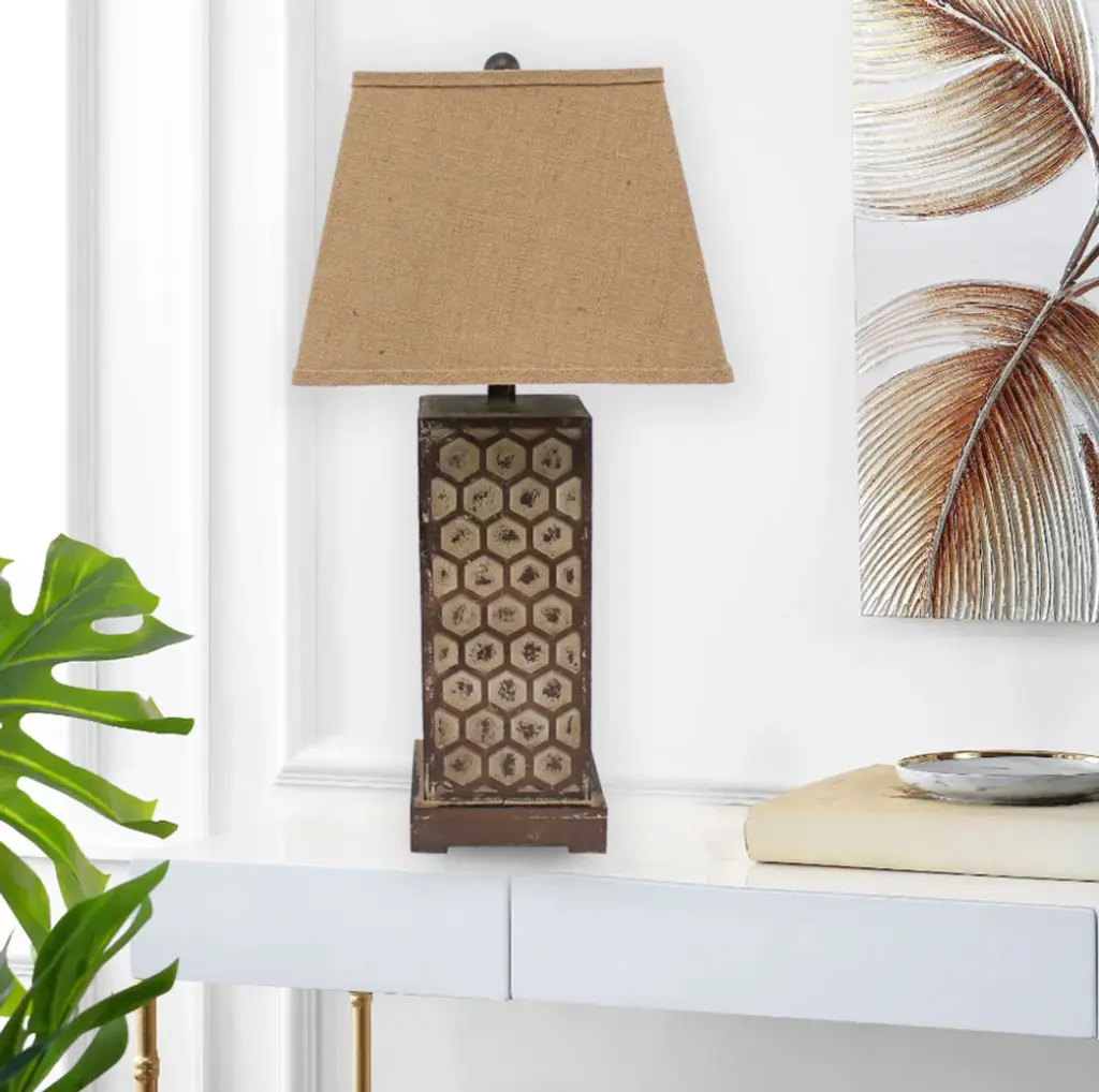 Industrial Table Lamp with Honeycombed Metal BaseTL-005 Industrial Table Lamp with Honeycombed Metal Base, It must be a nice choice to add light and attractive style to your room with our Teton Home TL-005 Industrial Table Lamp with Honeycombed Metal Base. This accent piece features a clean, linear design with a rich distressed finish to enhance special industrial style it would like to express. . This is a table lamp with rectangular metal pedestal; Khaki shade; 29 x 28 x 8 .Model No : TL-005Brand : Teton HomeIndustrial Table Lamp with Honeycombed Metal Baseindustrial collectiondistressed metal basekhaki linen shadeUPC : 035127517254Product Dimensions(W x D x H): 2 x 8 x 7