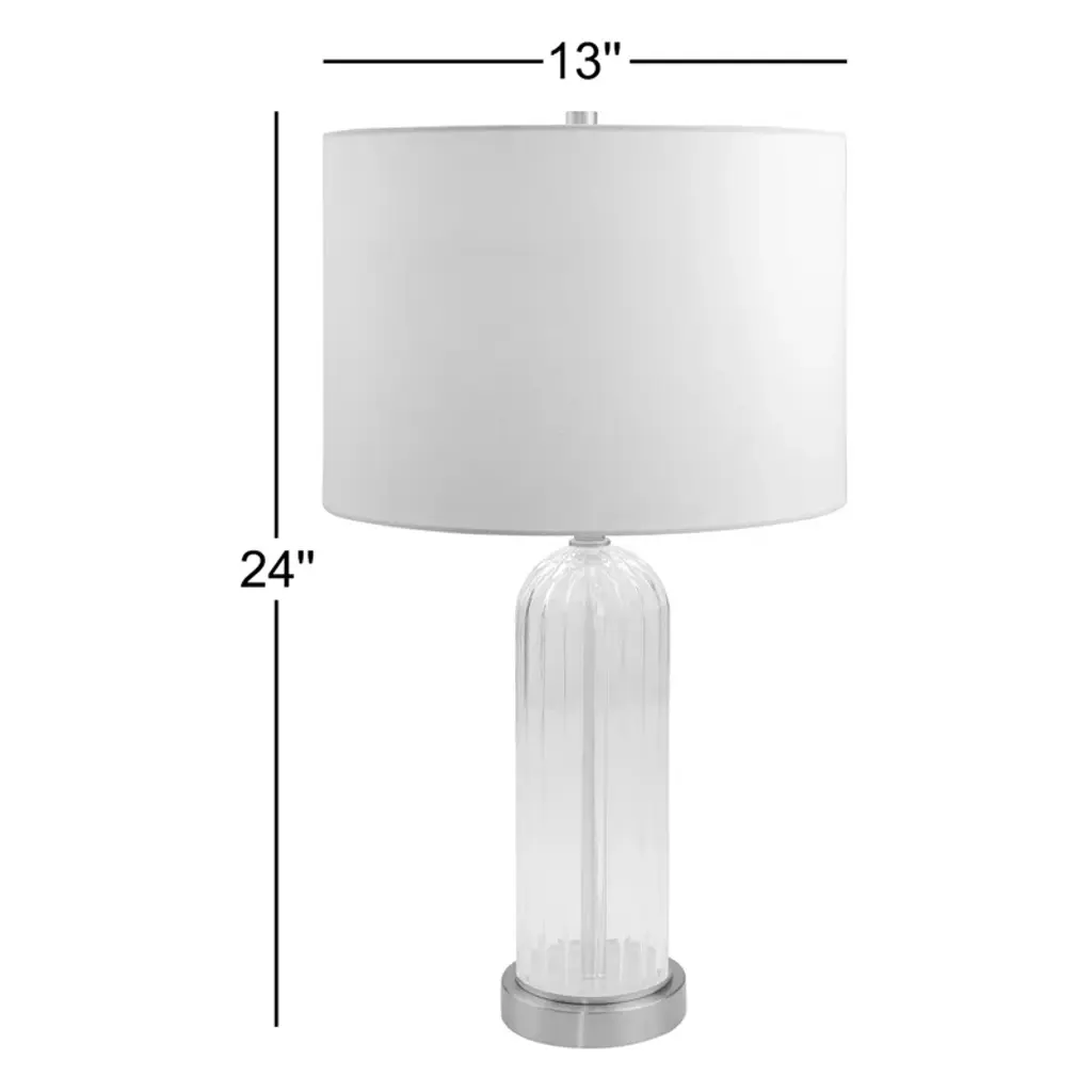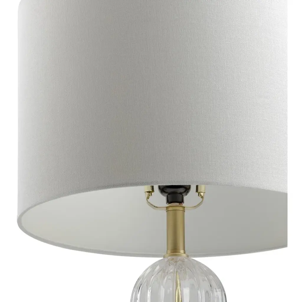 Bring a warm and inviting atmosphere to your home with the Ini accent lamp. With its Country Cottage style, this lamp features a metal body and glass accents for a stunning look. The cotton lamp shade provides an extra layer of texture while the neutral tones blend into any existing décor. Perfect for adding light to any space, the Ini will become a cherished piece in your home for years to come. Place on end tables, shelves, or anywhere you need some extra light and charm. For best care, avoid harsh cleaners as they may damage the finish.