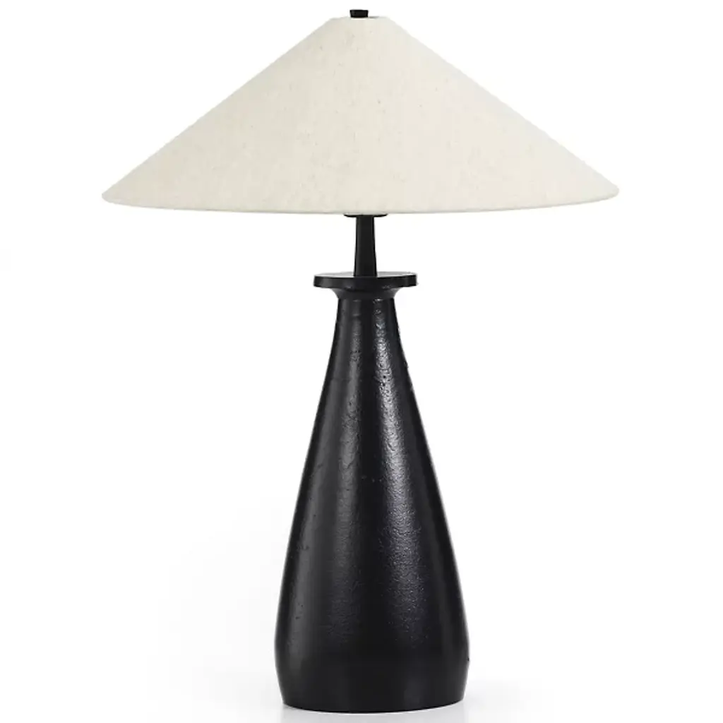 Bring mid-century modern style to your home with the Innes Tapered Table Lamp by Four Hands. A beautifully shaped base of aluminum pairs with a cotton shade for a striking contrast. Within this triangular shade rests a brilliant LED that illuminates your surroundings with ease. Your furnishment is made for portability so that you can take the Innes Tapered Table Lamp from room to room.