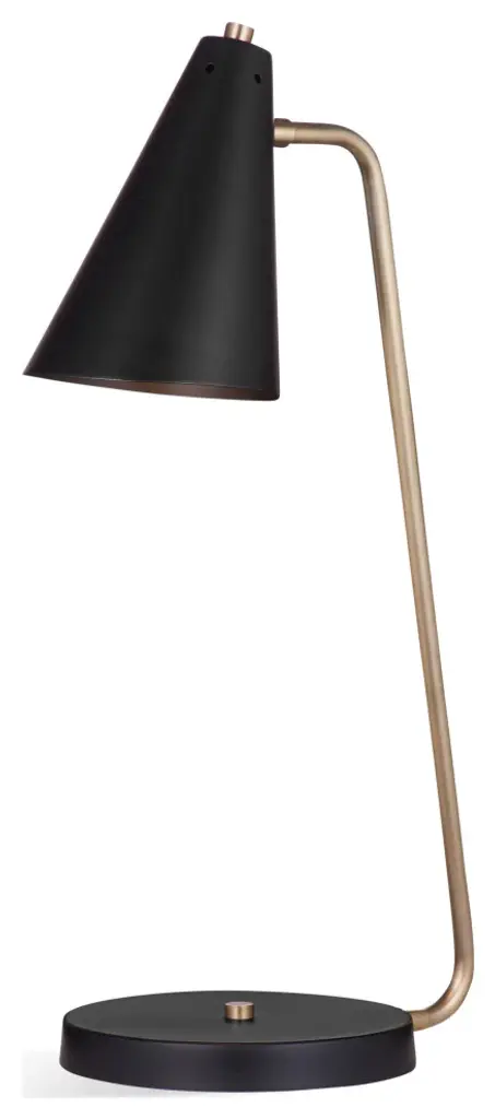 The Inyo Desk Lamp features a brass body with black matte shade and base.Features:Lamp body is constructed with metalBulb type a required, but not includedEasy assembly - just attach harp, finial and shadeBulb not includedEasy assembly - just attach harp, finial and shadeFor over a century, Bassett Mirror has been synonymous with style and quality, transforming homes with its sophisticated and timeless designs. With a wide-ranging collection of furniture, lighting, mirrors, and art, Bassett Mirror seamlessly blends modern style with classic appeal. From rustic modern to luxe glam, each piece is thoughtfully crafted to inspire and elevate any space. Committed to exceptional value and customer care, Bassett Mirror makes it easy for homeowners to create beautiful, personalized interiors with confidence.