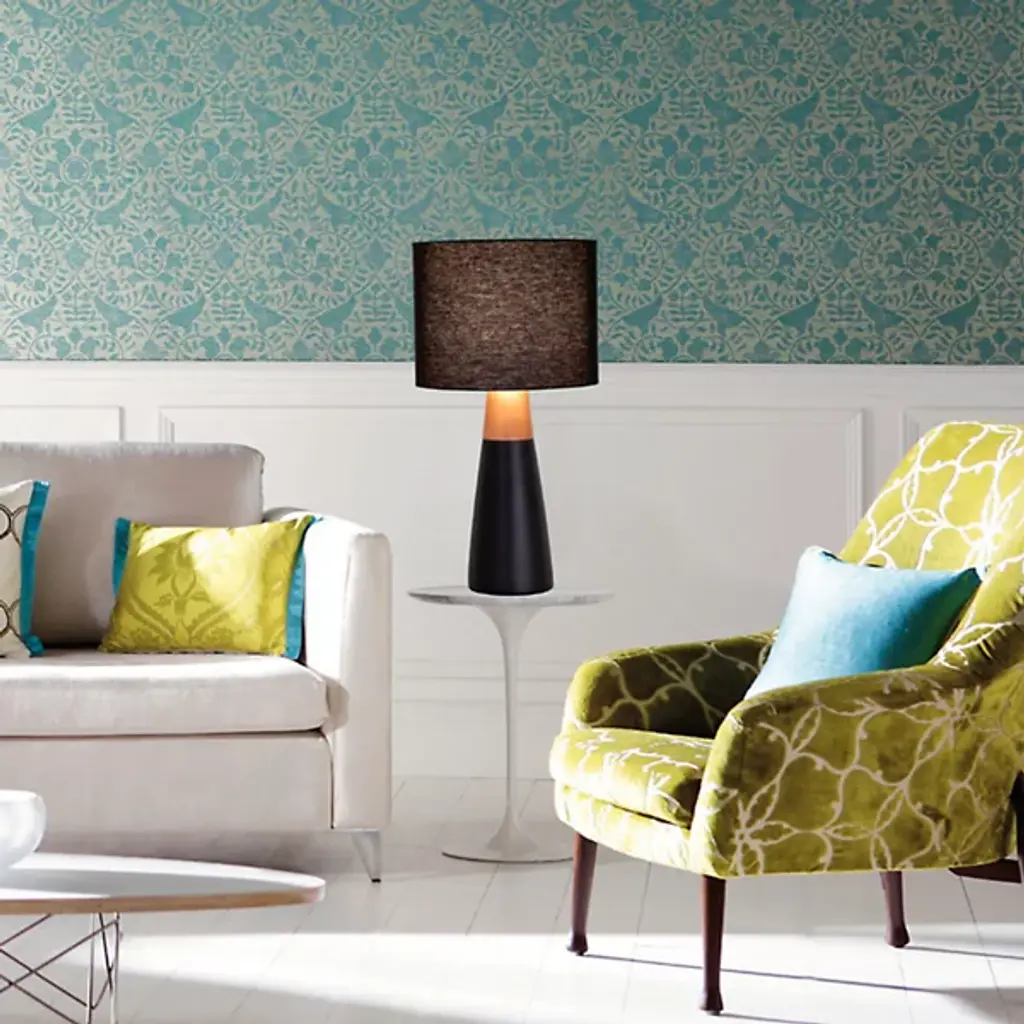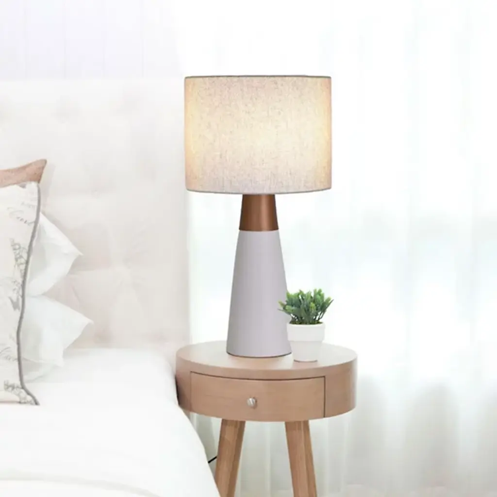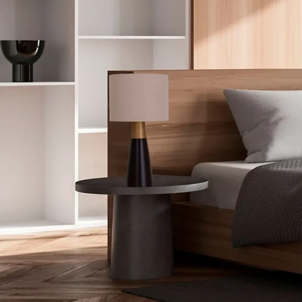 The Ipê Table Lamp from Geo Contemporary speaks of modern sophistication while maintaining a connection to natural forms and colors. Its base features a bold, two-tone design: a sleek, elongated cone supports a shorter segment. The lamp is crowned with a generously sized cylindrical shade in crisp white, which provides a striking contrast to the earthy base. The proportions of the lamp are carefully considered, with the height of the base and shade in perfect balance.