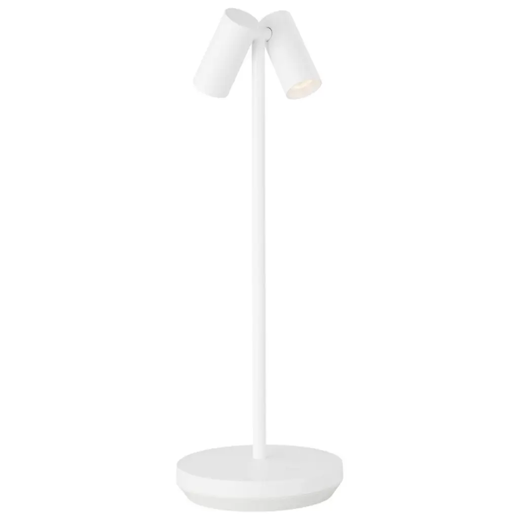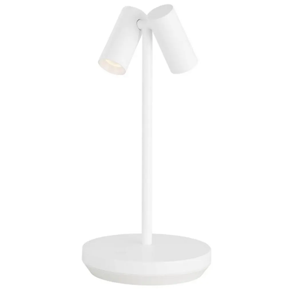 The playful and decorative Ipoli IPO10 LED Table Lamp from Lambert & Fils puts a central focus on the thoughtful motion of its two curved light housings. Created by Samuel Lambert, the dual heads of the design emerge from opposite sides of a slim vertical stem. Each head pivots up to 330 degrees, creating highly customizable lighting, swinging down for direct task light and off to the sides for a subtle ambient glow. Frosted opal acrylic diffusers soften the energy-efficient LEDs, while built-in touch dimmers on each head offer precise control over brightness and mood.