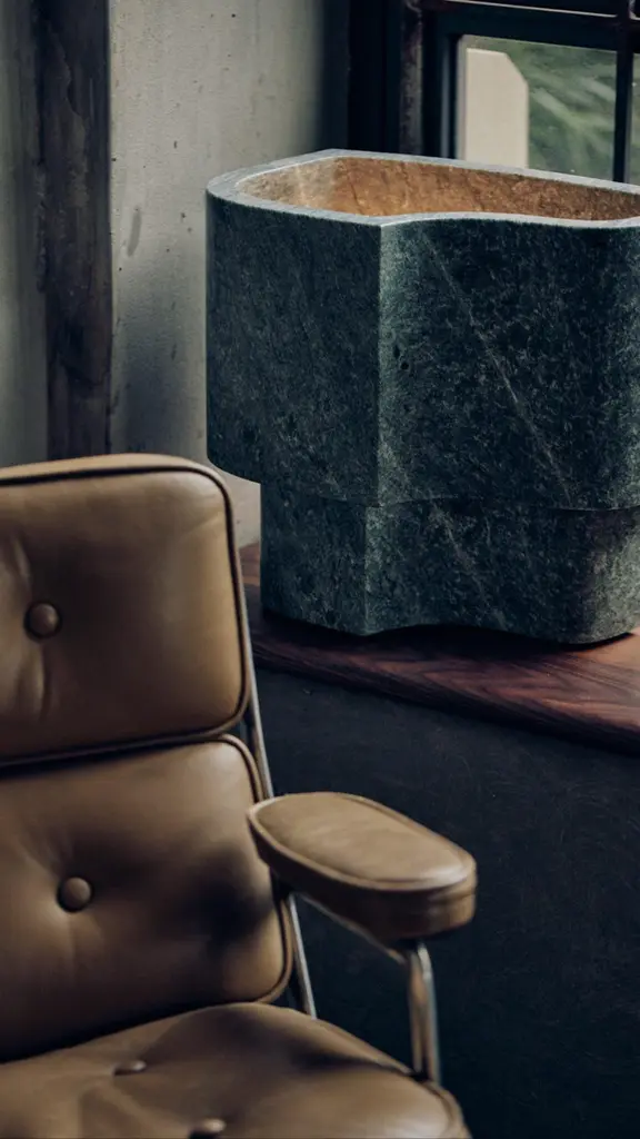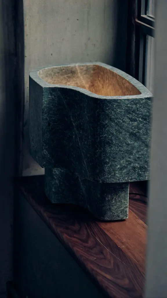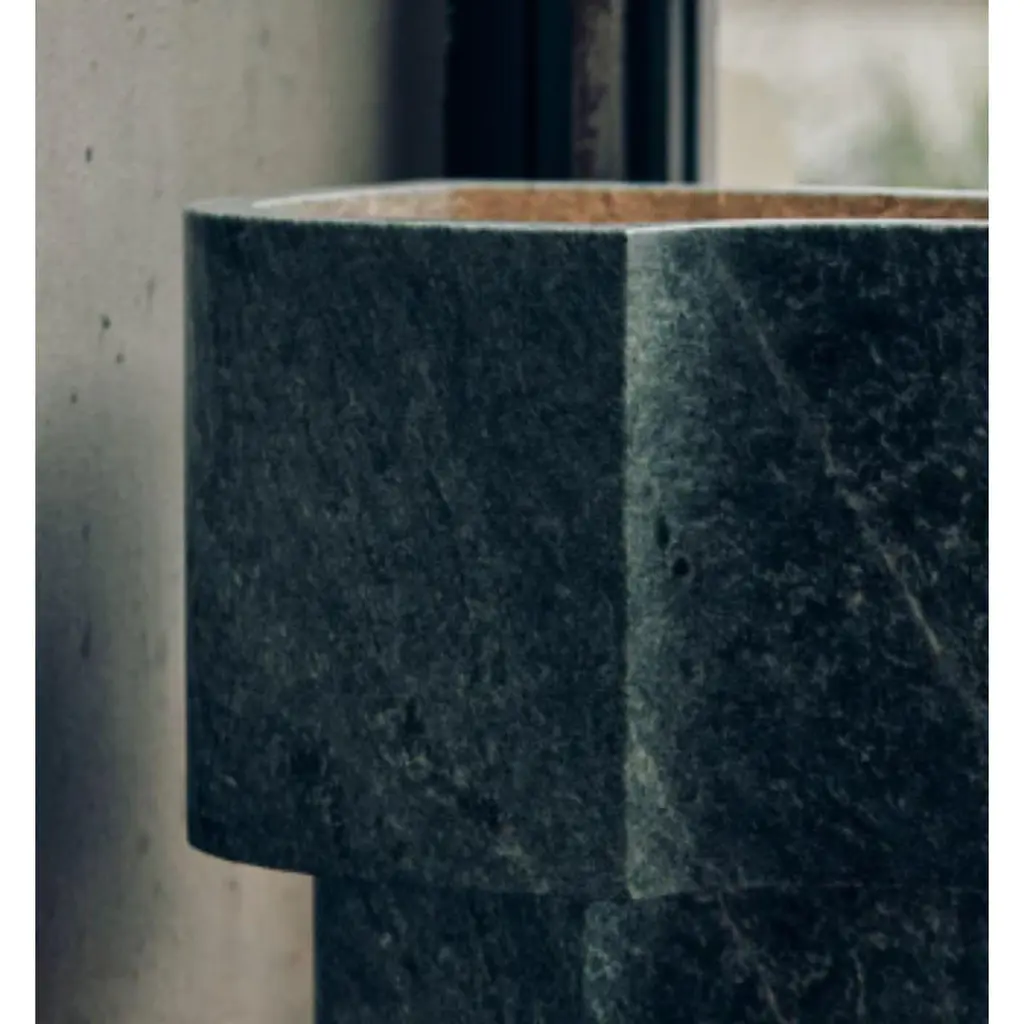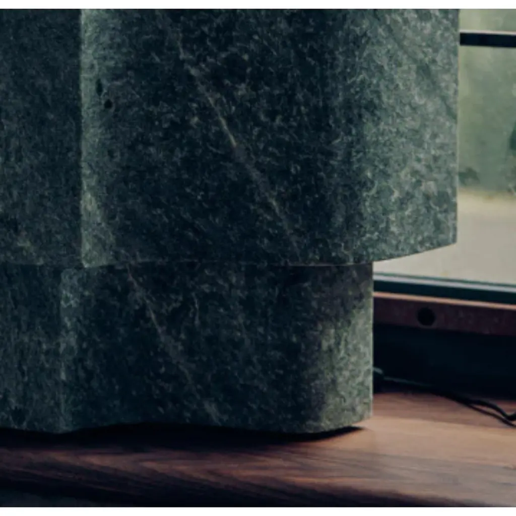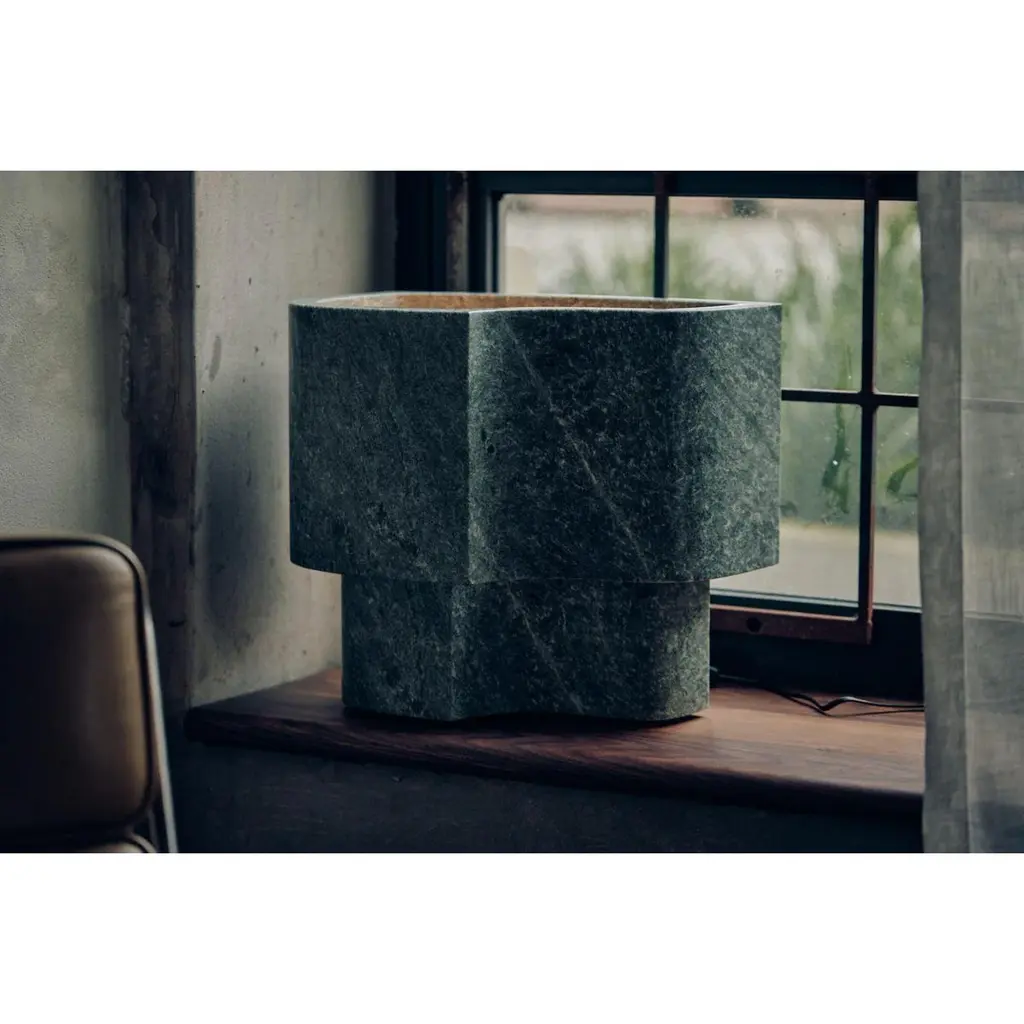 Verde Offset Lamp by Henry WilsonDimensions: W 44.5 x D 30 x H 39 cmMaterials: Verde MarbleOffset Lamp is hewn from two pieces of solid Verde Marble. As stone is a natural material, variations of the pattern will occur from piece to piece.Emits a warm and atmospheric glow. Illuminates stone from within revealing the opacity of the material.It is heavy and will require care in transport and a sturdy surface to display. This piece will be made by special order only.All our lamps can be wired according to each country. If sold to the USA it will be wired for the USA for instance.Henry Wilson's work combines a rational, democratic utility with an element of sculptural expression. There is a clear form and function in our products, but it’s important they also have feeling. We are interested in the awkward beauty that comes from something made by hand. We like to explore how imperfection can be introduced into an Industrial process, to make something at scale that retains a sense of individual charm.