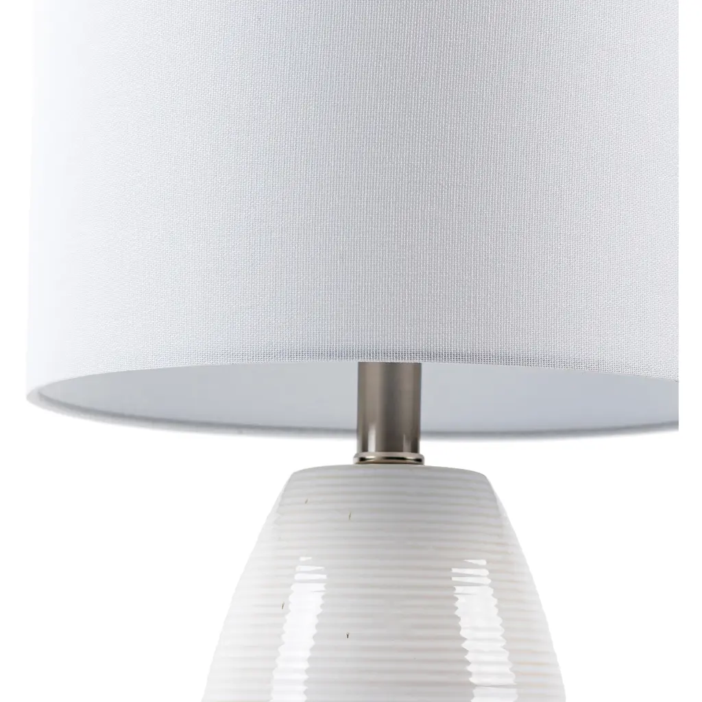 Collection: Isbergues Colors: Orange, White, Silver Gray, Metallic - Nickel, Translucent Material: Body: Ceramic / Shade (Outside): Linen / Shade (Inside): Polyester / Finial: Iron Styles: Contemporary Made In: China Lighting Type: Accent Table Lighting Shade Material: Linen, Polyester Shade Color: White Cord Length: 6' Switch Type: On/Off Number of Bulbs: 1 Socket Type: E-26 Bulb Wattage: 100W