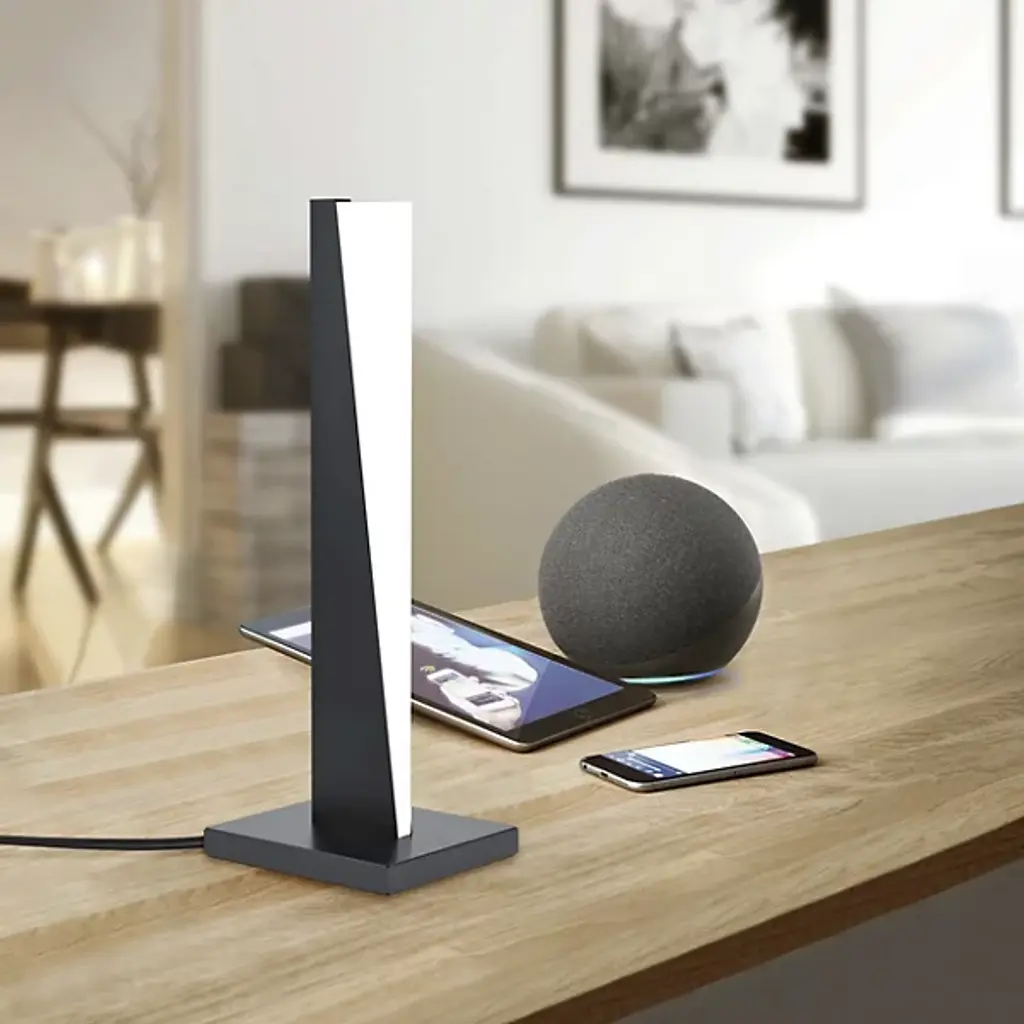 Recline back, open a novel, and turn on the Isidro LED Table Lamp from Eglo to cast subtle yet vivid illumination your way. This stunning and sleek table lamp utilizes a vertical integrated LED bar to provide light housed behind an acrylic diffuser. Elegant metal framing climbs up the side of the diffuser, providing stability and design interest. Place this contemporary table lamp next to the couch, in a reading nook, or in the office.