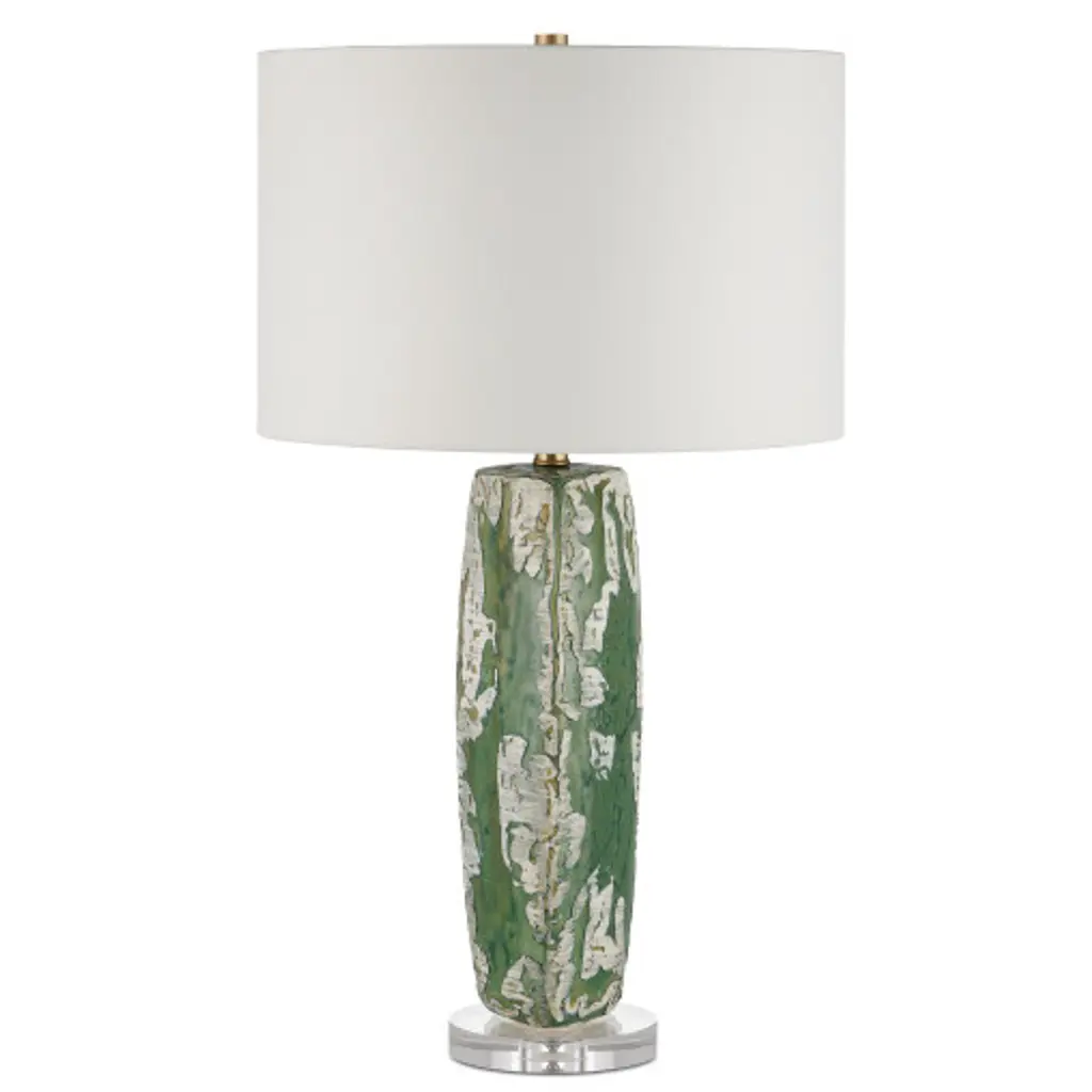 The Isolde Table Lamp is a stunning textural marvel, imbuing a space with a variety of tones. This glass piece showcases a two-toned motif, combining pristine whites with an aged look. The two-tiered base features textural aluminum discs in Antique Brass and Antique Bronze, with a matching accent near the neck. An acrylic ball finial juxtaposes the body, infusing the piece with subtle transparent tones.