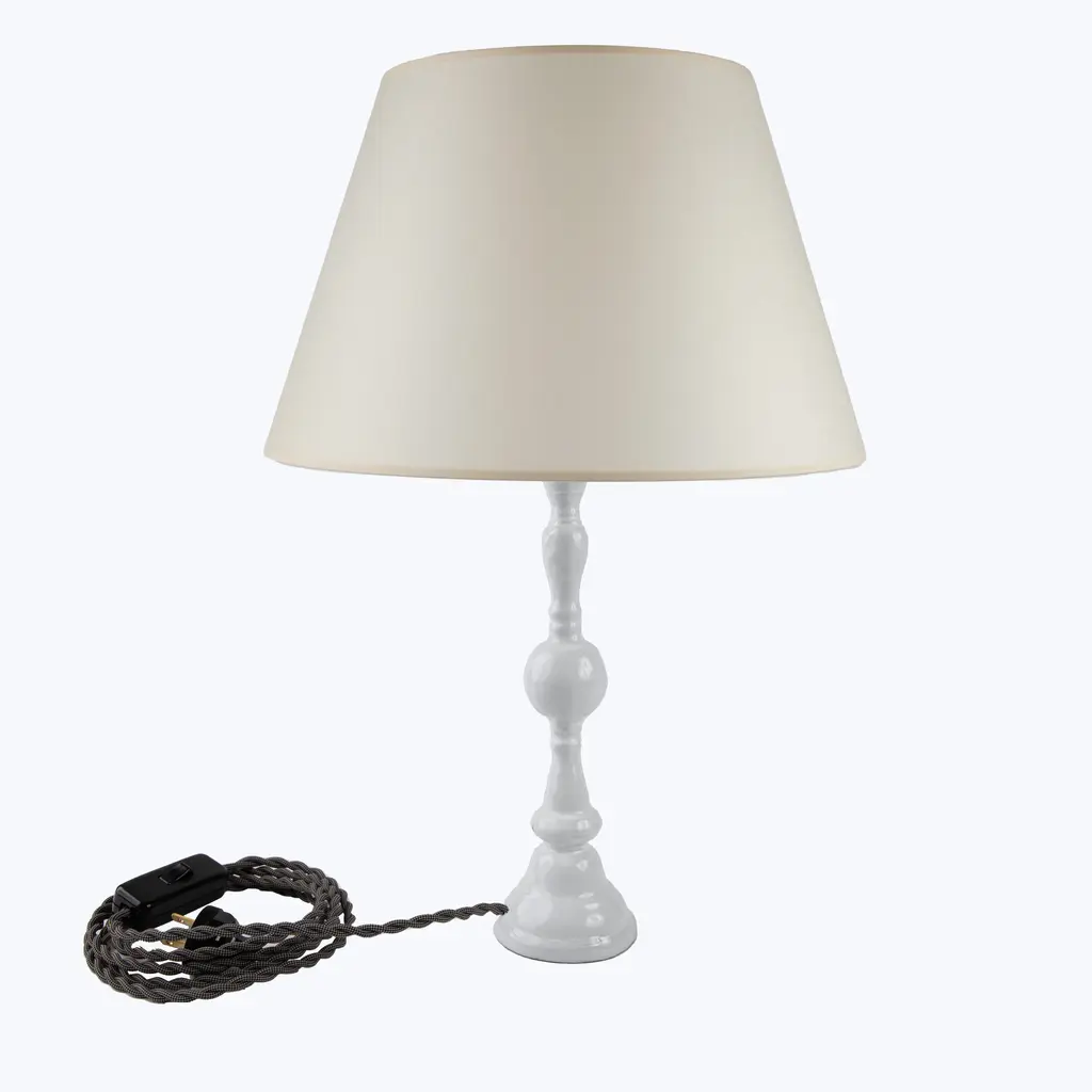 The Istanbul Table Lamp Base by Astier de Villatte is an elegant offering from the French ceramic design house. Crafted in black terracotta clay with Astier de Villatte’s signature milky porcelain glaze, this sophisticated base is entirely handmade in Paris by expert artisans. An exquisite addition to any home. Available in 12" and 17" sizes. Pair with the 13.8" or 17.7" Off-White Lamp Shade. *Lamp shade sold separately