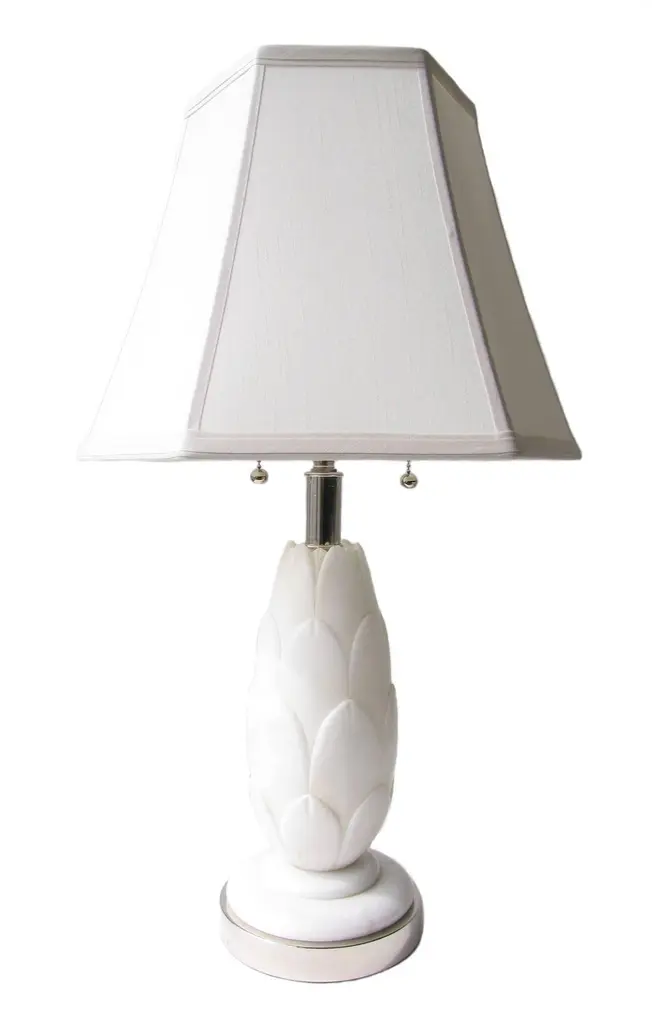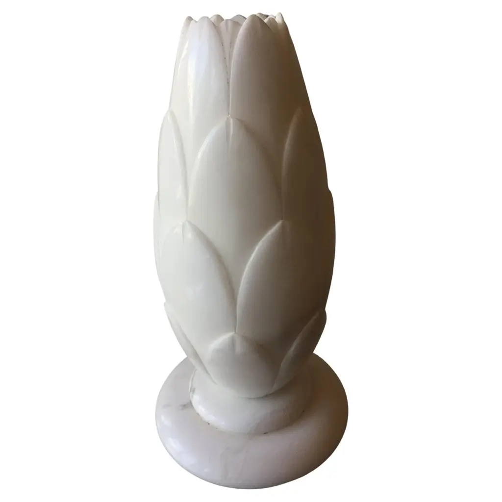 Italian 1960s Carved Alabaster Acanthus Form Lamps