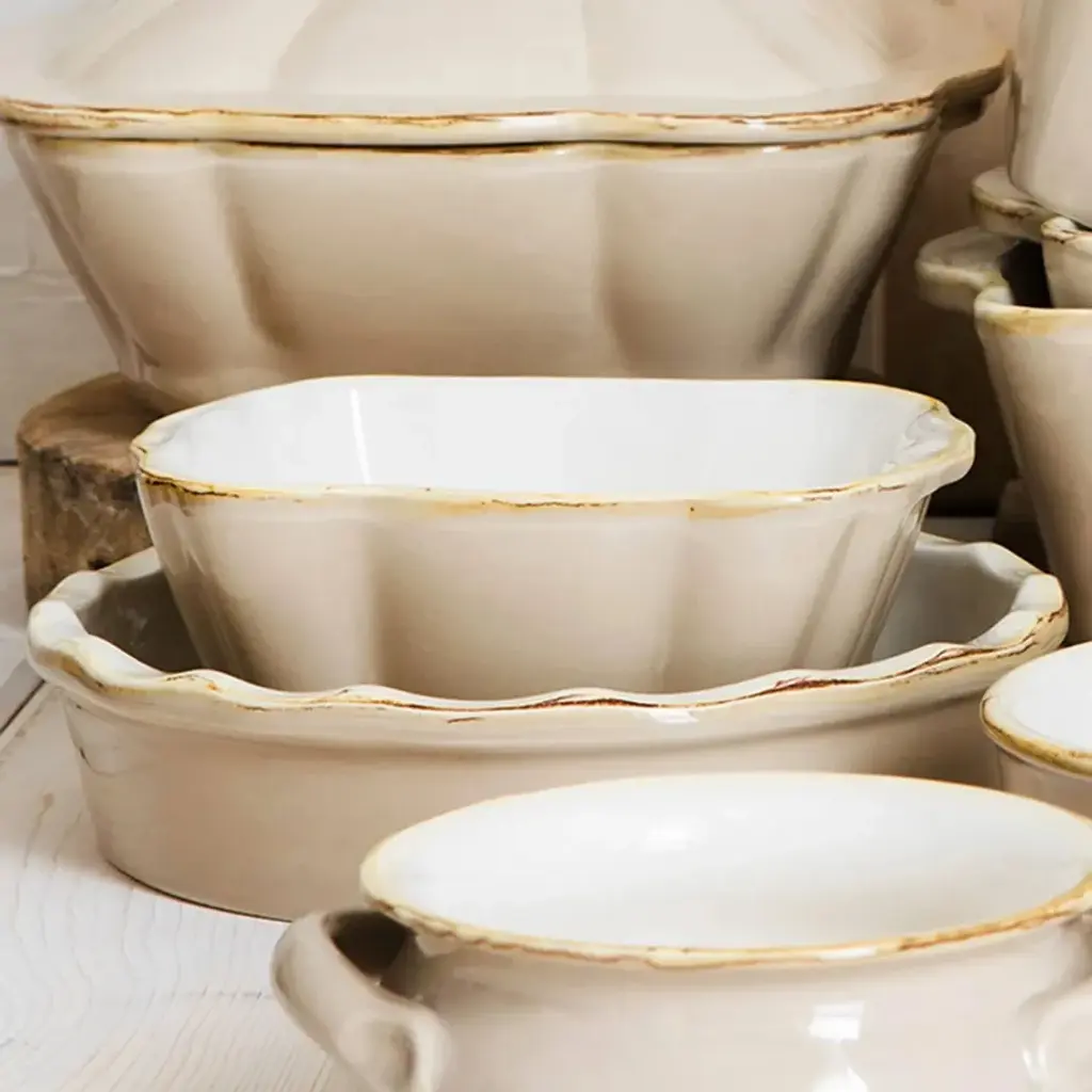 Featuring scalloped edges and an elegant hue, the Italian Bakers Small Square Baker is part of VIETRI's newest line of bakeware. Handcrafted of Italian stoneware in Umbria, this unique size and fun shape is perfect for gatherings and family get-togethers. Since 1983, Vietri has specialized exclusively in Italian handcrafted ceramics, stainless and pewter flatware, mouth blown glassware, lamps, urns and planters. Families of artisans with 3 or 4 generations of history create these special pieces using centuries-old techniques. The subtle color from a paintbrush and the curving stroke of the artist's hand are never repeated in quite the same way, making each piece truly unique.