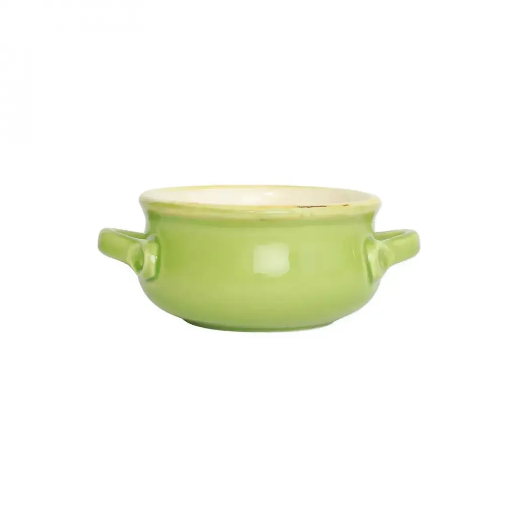 Featuring scalloped edges and a bright, beautiful hue, the Italian Bakers Small Handled Round Baker is part of VIETRI's newest line of bakeware. Handcrafted of Italian stoneware in Umbria, this piece is perfect for all gatherings. Since 1983, Vietri has specialized exclusively in Italian handcrafted ceramics, stainless and pewter flatware, mouth blown glassware, lamps, urns and planters. Families of artisans with 3 or 4 generations of history create these special pieces using centuries-old techniques. The subtle color from a paintbrush and the curving stroke of the artist's hand are never repeated in quite the same way, making each piece truly unique.