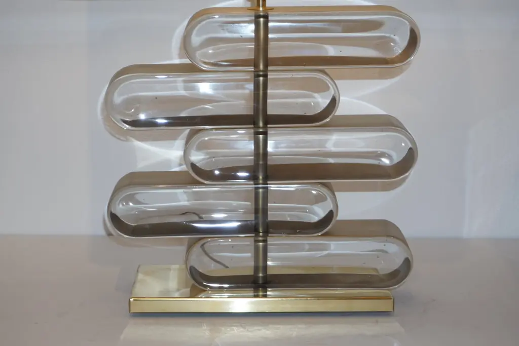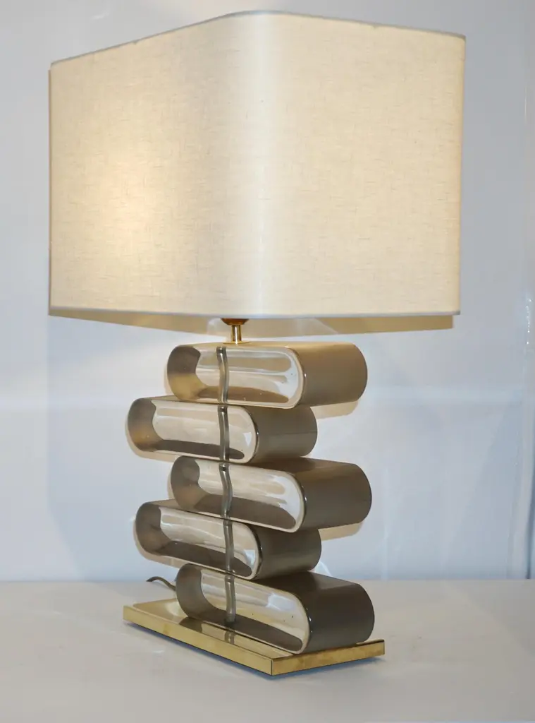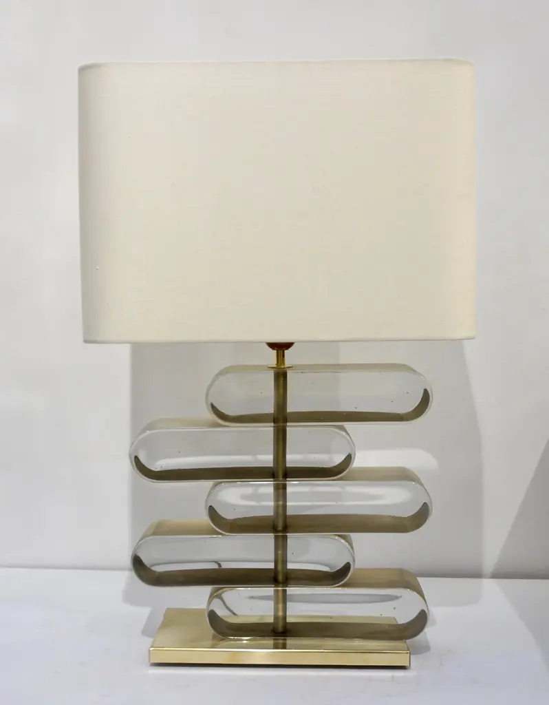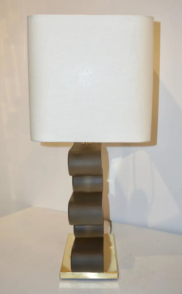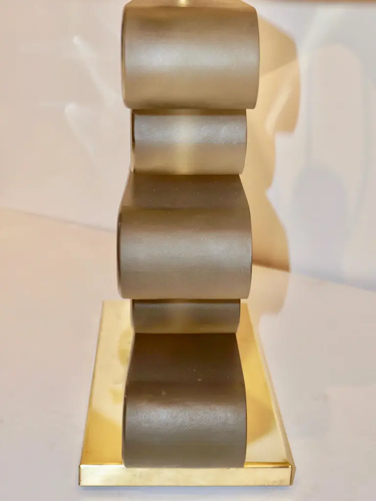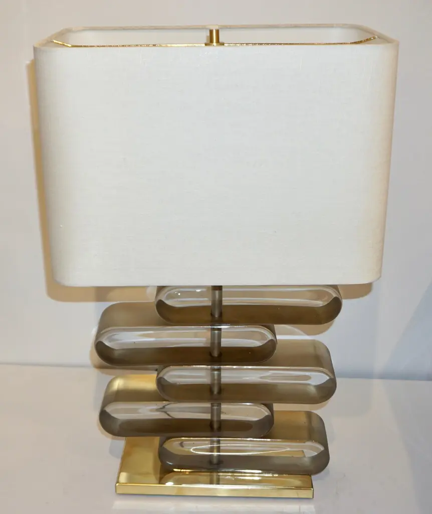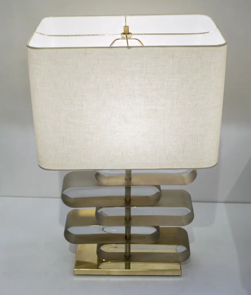 Italian Modern Pair Of Brass And Bronze Murano Glass Architectural Table Lamps