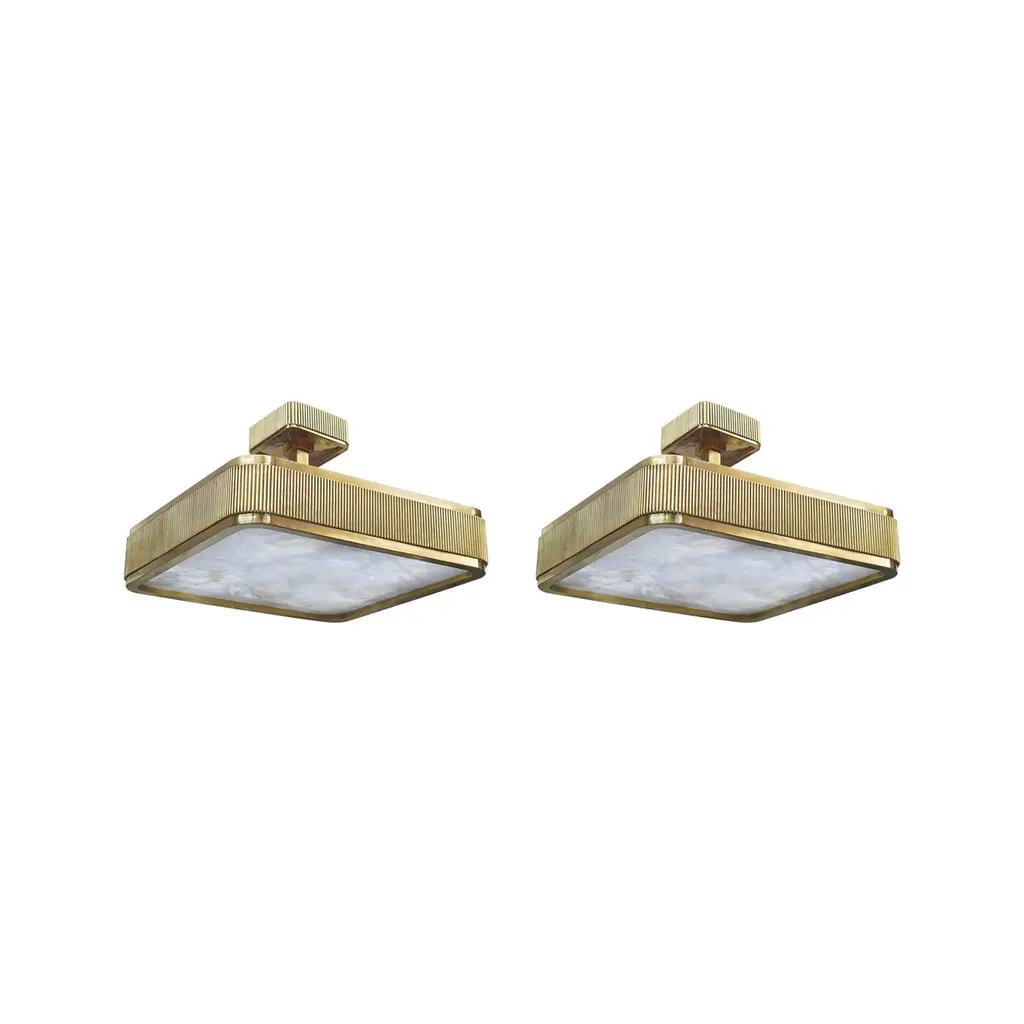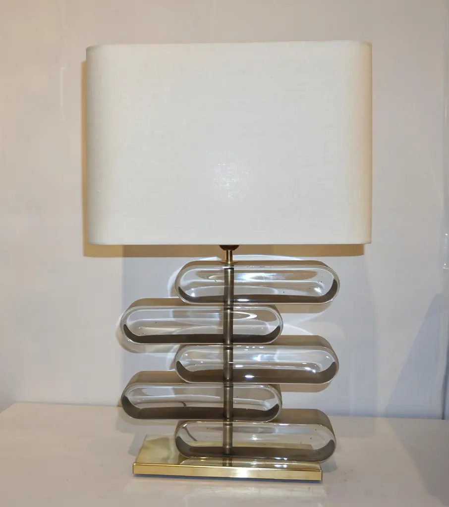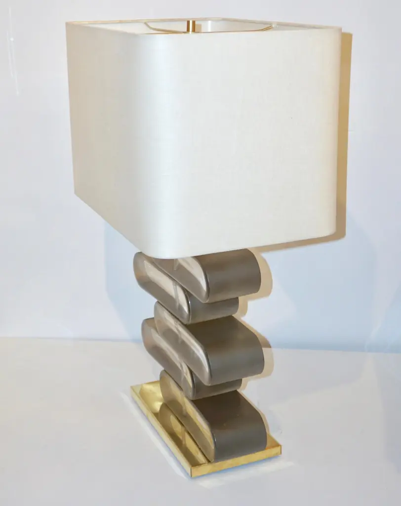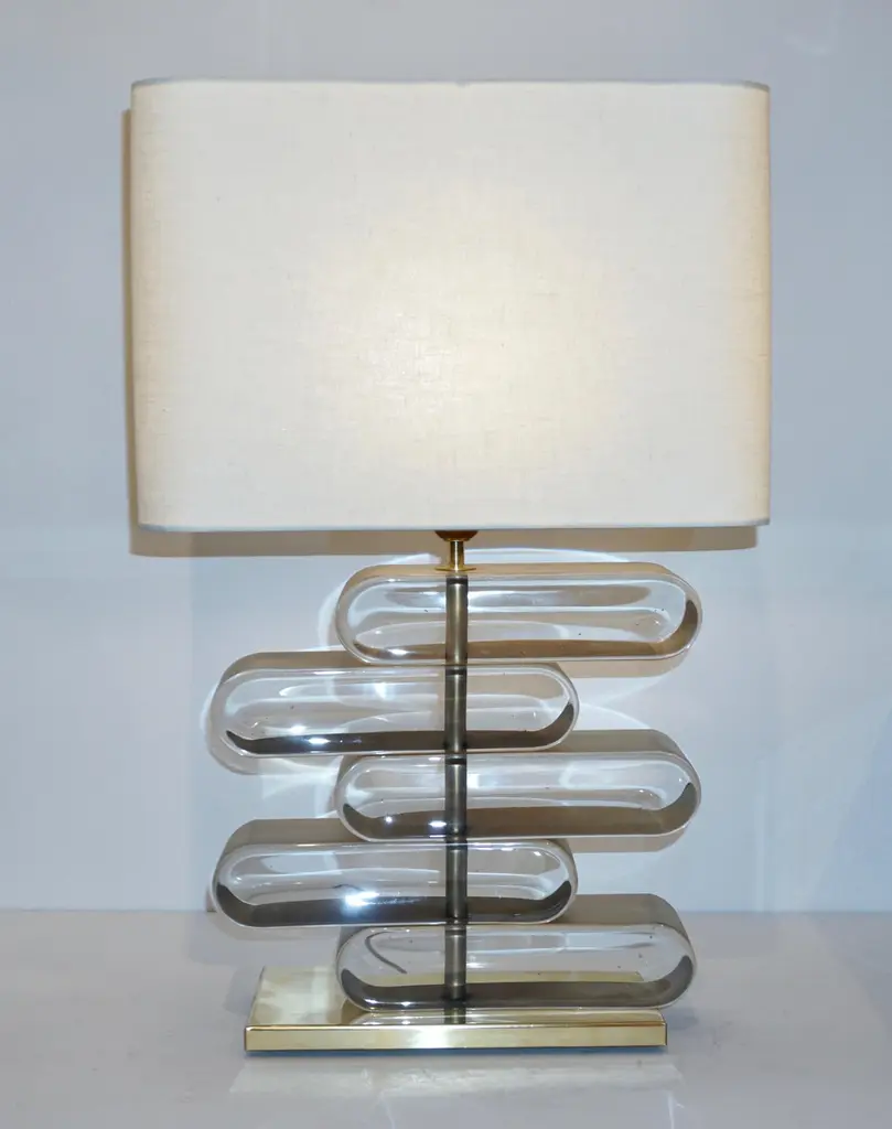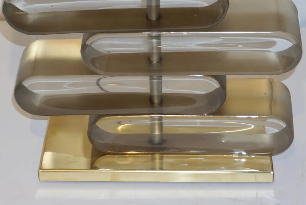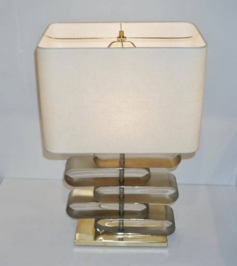 Italian Modern Pair Of Brass And Bronze Murano Glass Architectural Table Lamps