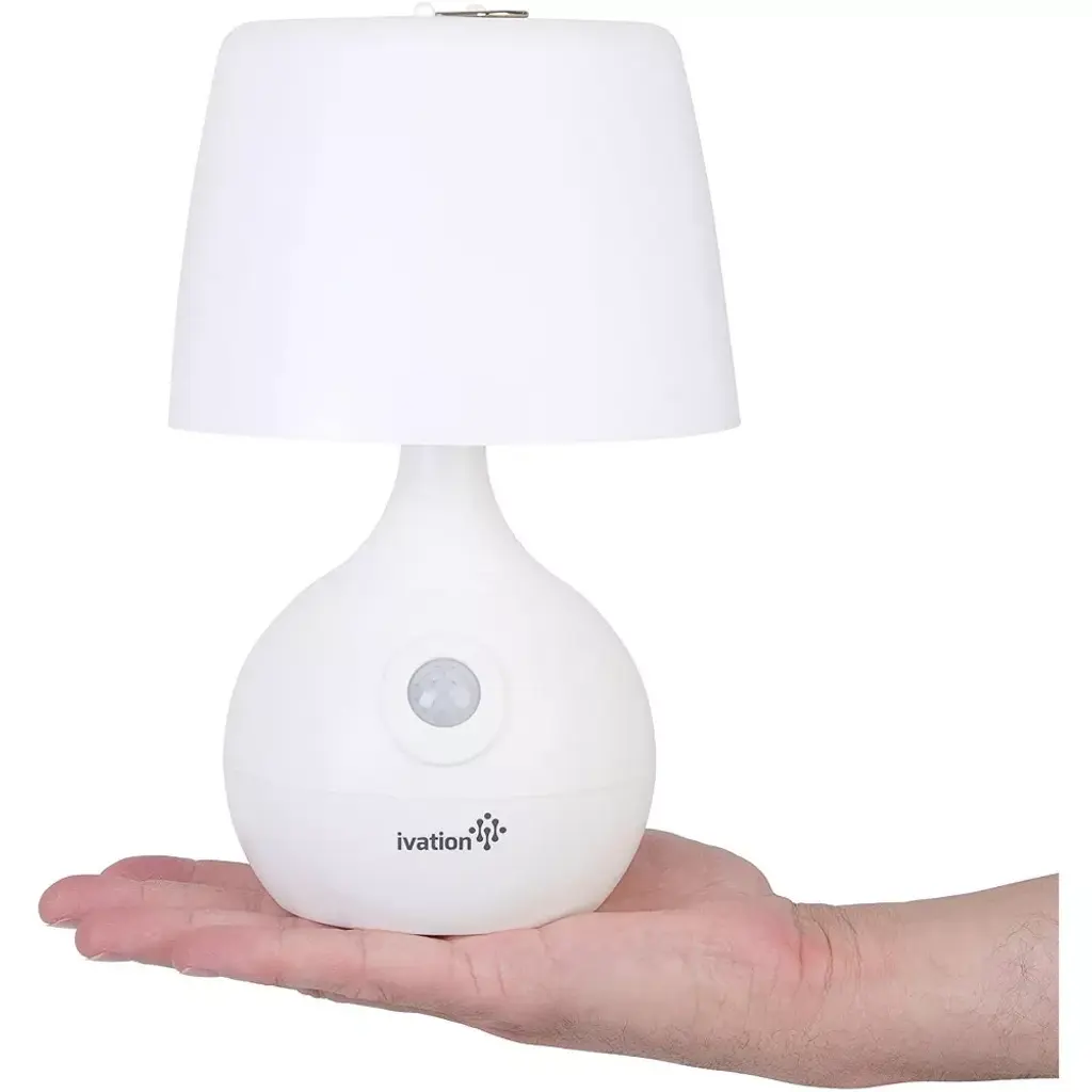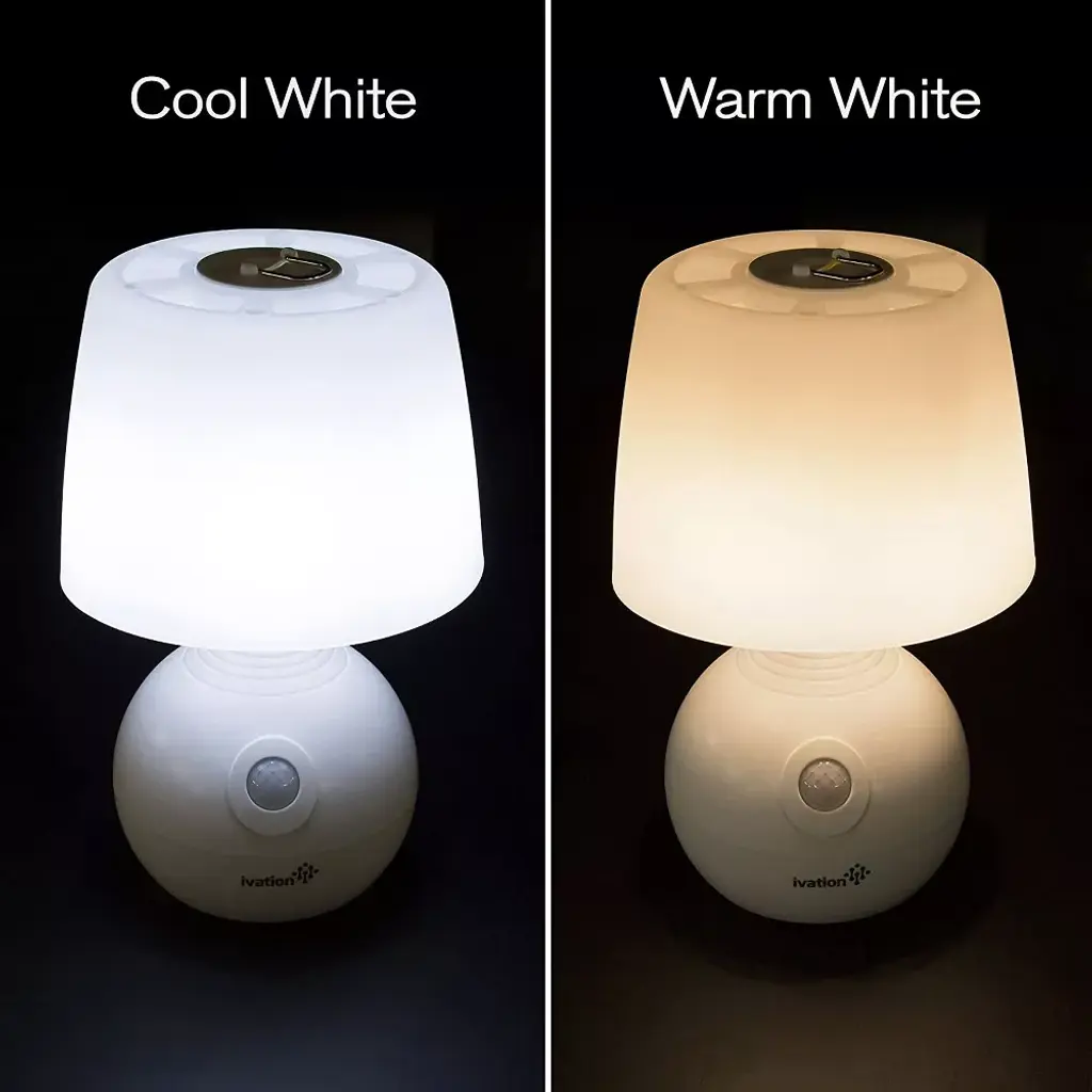 Light up your world Get perfect lighting at any time of the day with the Ivation 12-LED Battery Operated Motion Sensing Table White Lamp. Easily adjust your small table lamp to your preferences with the cool and warm light modes. The built-in ambient motion sensor allows your battery powered lamp to detect when you need light and automatically turn on. Want to operate your LED table lamp manually? Easily toggle between modes to turn your battery operated table lamp on and off in the traditional manner. Great lighting finishes the décor of your home. Get picture-perfect lighting with the Ivation 12-LED Motion Sensing, Battery Powered Table Lamp.