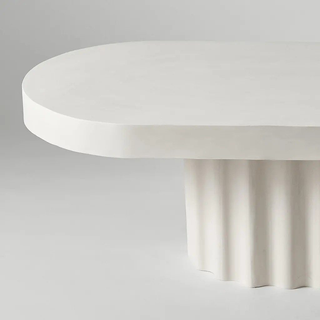 Ivory Wave Off-White Oval Coffee Table by Perler Dimensions: D 58 x W 120 x H 60 cm.Materials: Jesmonite.Weight: 45 kg.Dimensions may vary. Please contact us.Ivory Wave is an oval coffee table resting on an elliptical, wavy leg. Measuring 120×58 cm, it's a part of the 'Waves' series, featuring handcrafted coffee and side tables made from jesmonite—a fusion of gypsum and acrylic resin. Every piece in this collection stands unique, owing to the material used and the artisanal crafting process. This uniqueness manifests in the irregular, flowing shapes, patterns on the tabletop, and tonal shifts amidst various warm white hues. The oval top edges exhibit an organic form, while the elliptical leg portrays a consistent wave. Due to its artistic nature, newly crafted pieces may have slight variations from the coffee table pictured, whether in the tabletop's waviness or patterns.This space was created for individuals who, like me, appreciate originality, artistic objects, art, and design. Here, you’ll find more than just inspiration and advice – it’s a destination for applied art, featuring original designer furniture and artist-signed collections. You can find limited collections of tables, lamps, vases, and bas-reliefs, created exclusively for the Perler Design brand, in the design shop section (soon).I established this space immediately following my initial visit to the Milan Interior Fair. Although my love for design began much earlier, this event served as the catalyst for my action. In 2016, I launched my interior design blog where I continue to share monochrome spaces, interior design tips, and reports from industry events.A few years into blogging, my greatest dream was realized – the website expanded to include an online store featuring my unique furniture designs such as coffee tables, side tables, and table sets.Today, our offerings also encompass applied art objects crafted by artists. Sculptors, ceramists, graphic artists, and individuals engaged in artistic glass production design and create limited collections dedicated to the Perler Design brand. These include reliefs, glass and ceramic vases, and table lamps.These designs will beautifully complement various interior styles, including Parisian, Scandinavian, vintage, eclectic, and New York.