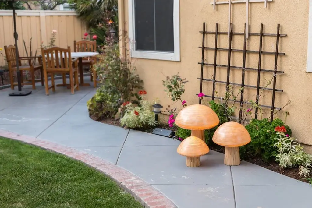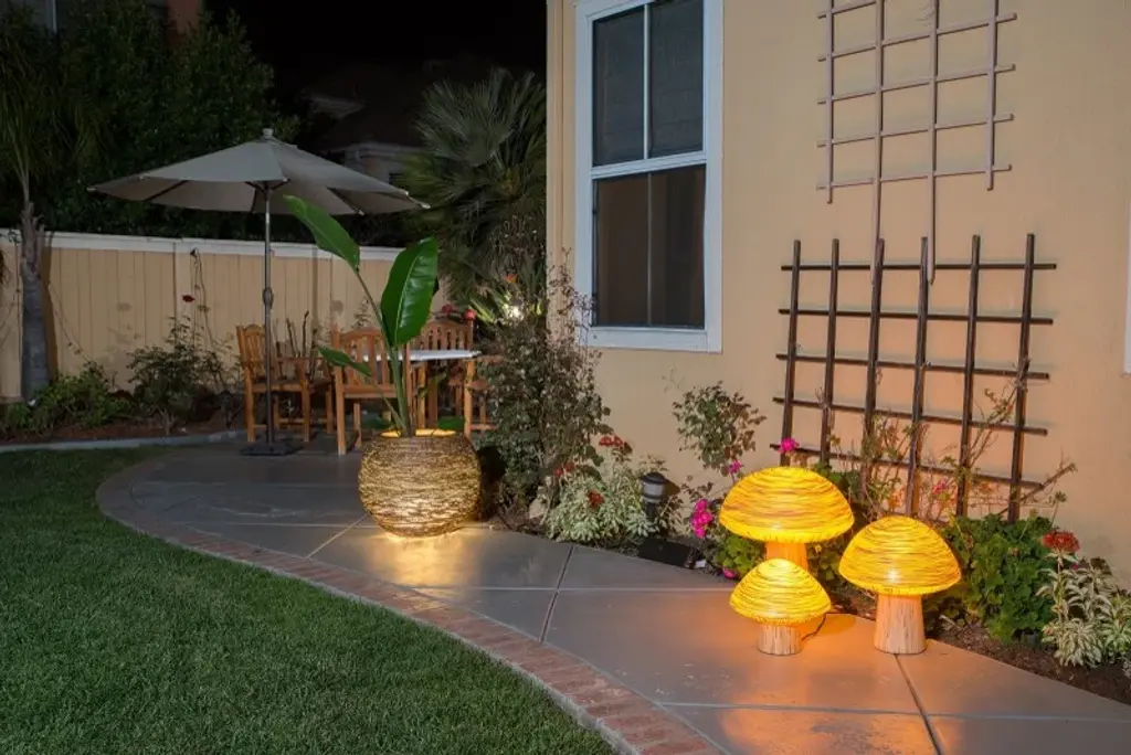 So much of accent product in a mushroom shape but none of those are as pretty and unique as Mushroom Lamp. The glow of the lights inside the mushroom creating a warm and cheerful feeling in a room or outdoor landscape. Each mushroom is hand made from natural pitrit and hand circled and glued to create the decoration of the mushroom. Main Picture shown Large, Medium, and small mushroom. Each lamp is sold separately.Large:Material:Fiberglass with pitrit decorationType: Outdoor LampColor: WhiteBulb Type: Standard E26/E27 base light bulbMax Wattage: 60 WattsVoltage Rating: 110V - 220VWeight: 9 LbsDimension: 18" Diameter and 21.3" Height